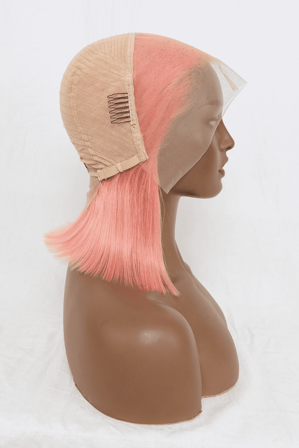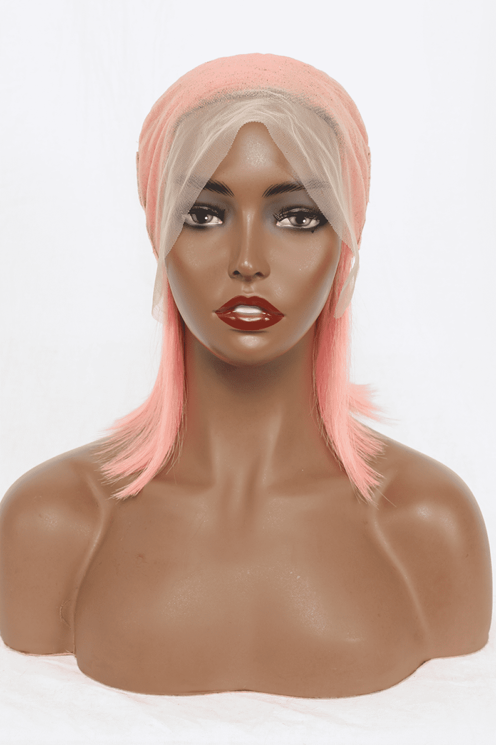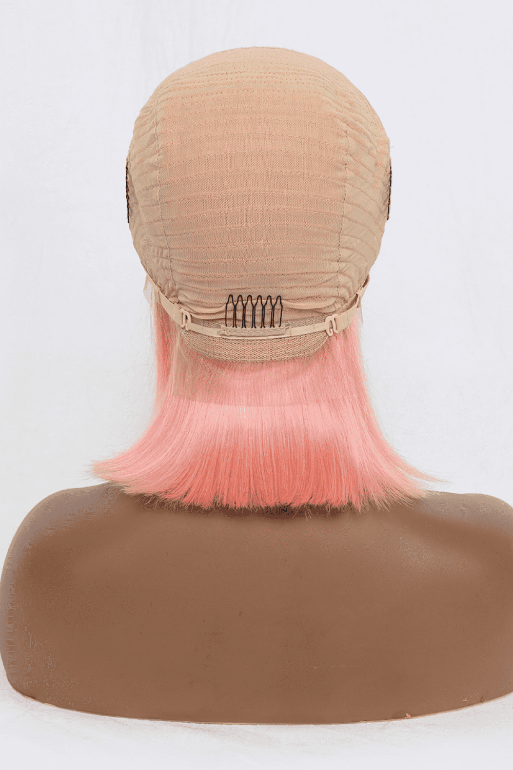 12" 165g Lace Front Wigs Human Hair in Rose Pink 150% Density