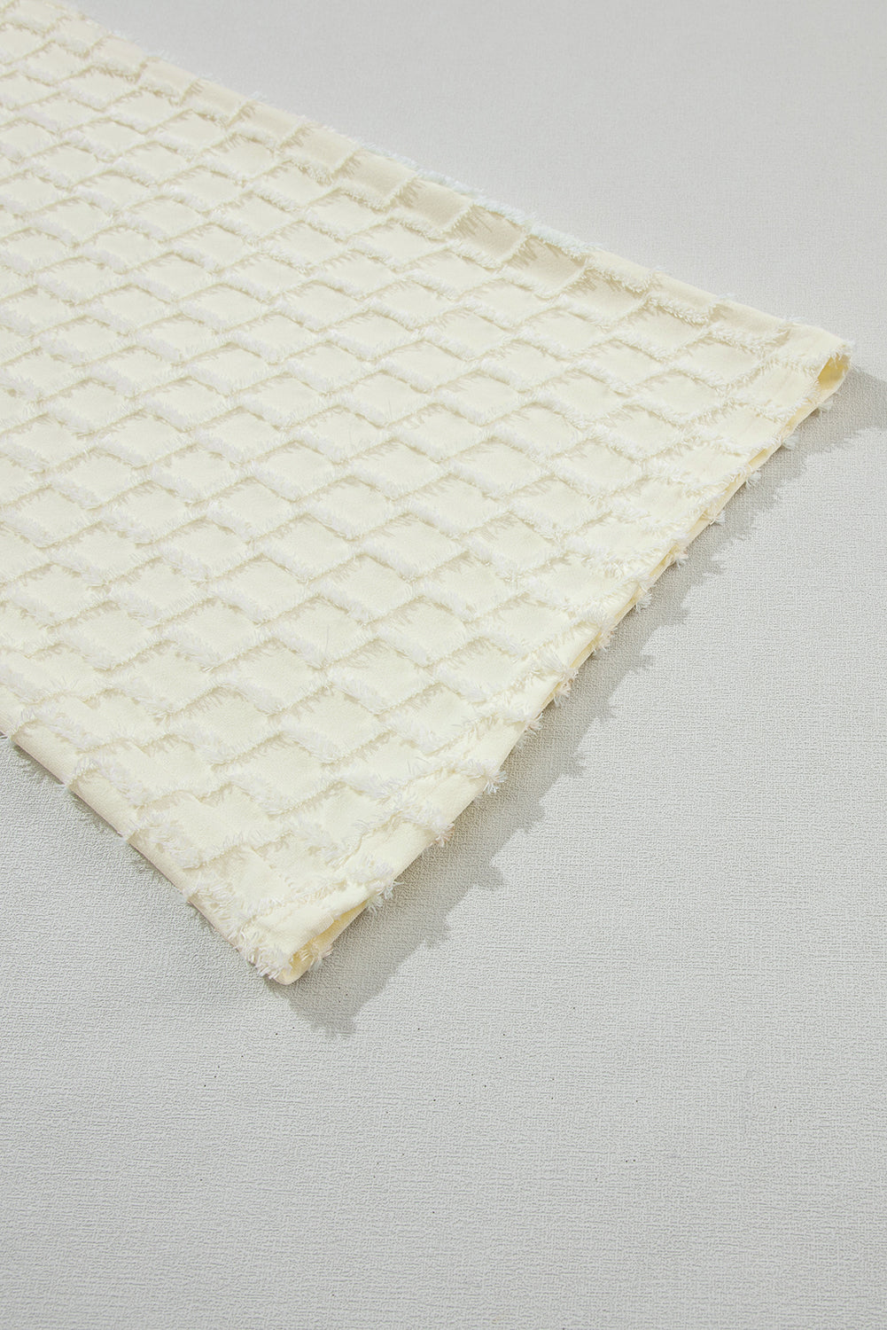 - The pants set offers a stylish and coordinated outfit with its matching top and bottom, featuring a lattice textured design for added visual interest.