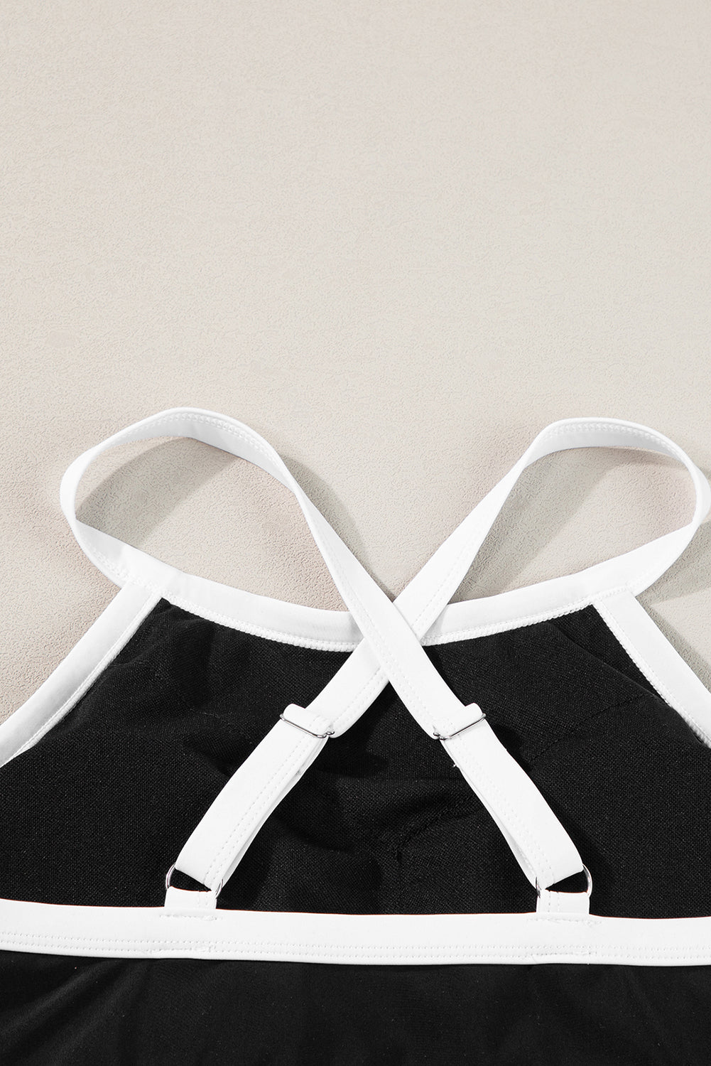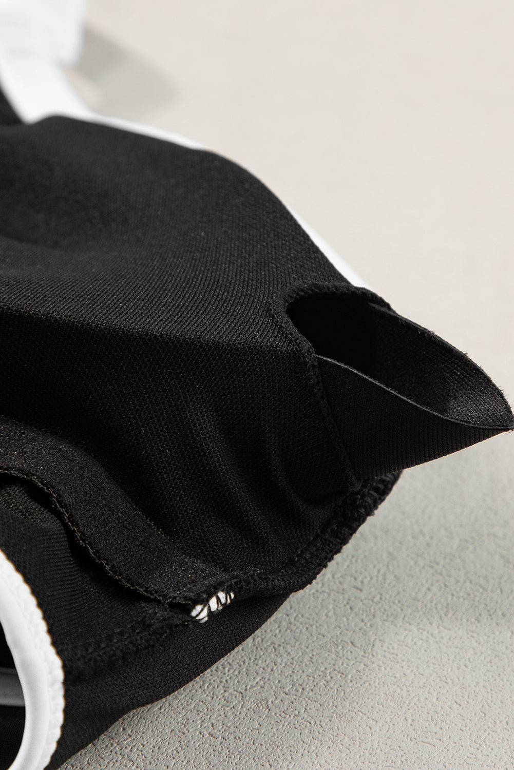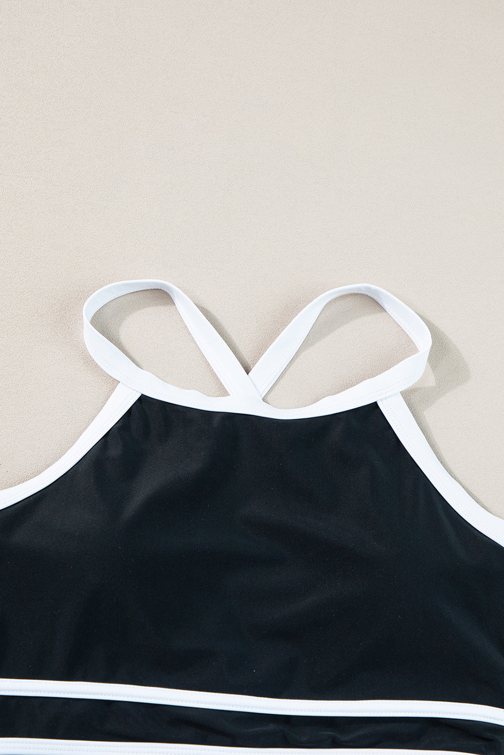 Black Contrast Trim Crisscross Back High Waist Bikini Set