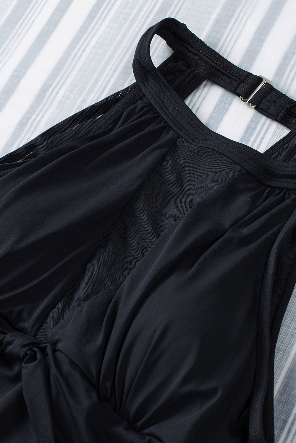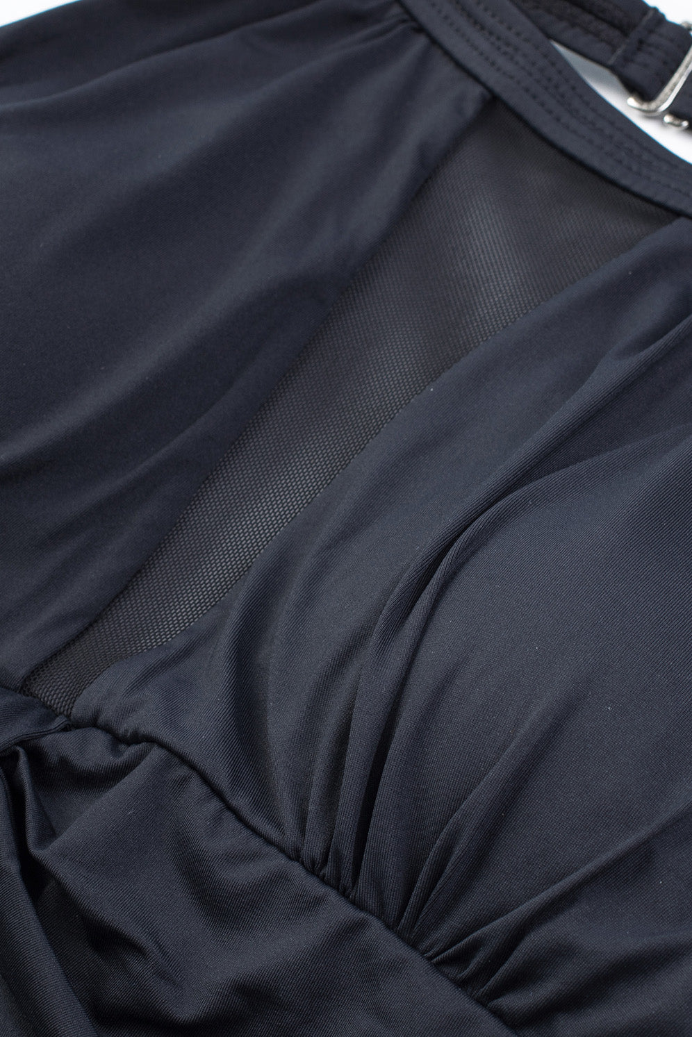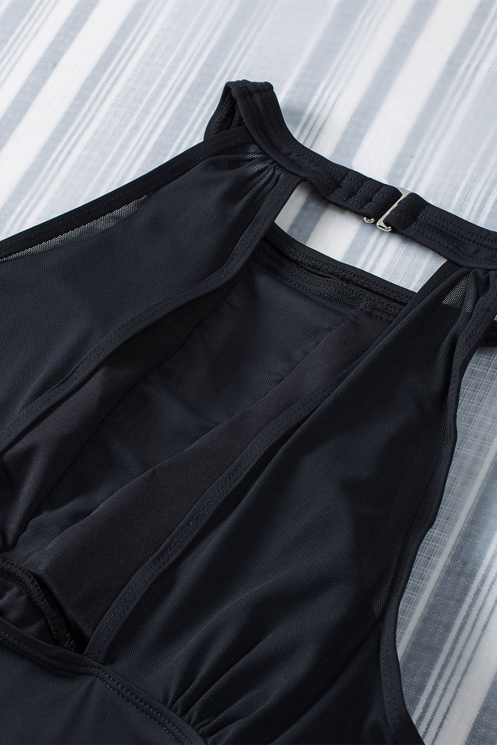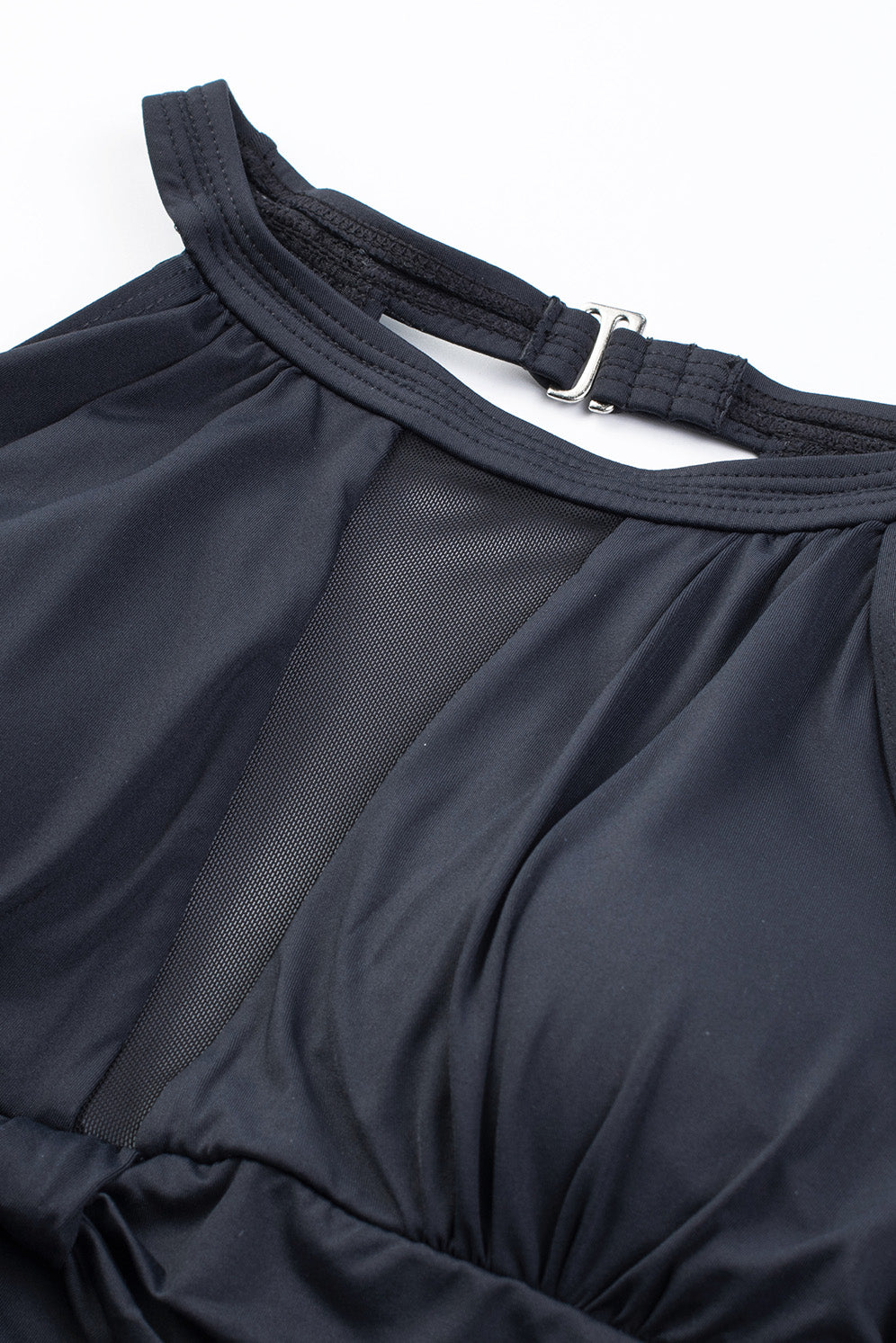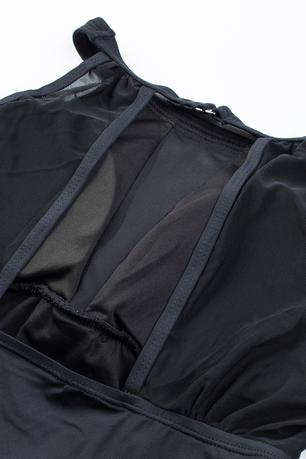 Black Cutout Mesh Ruched Tankini Swimsuit