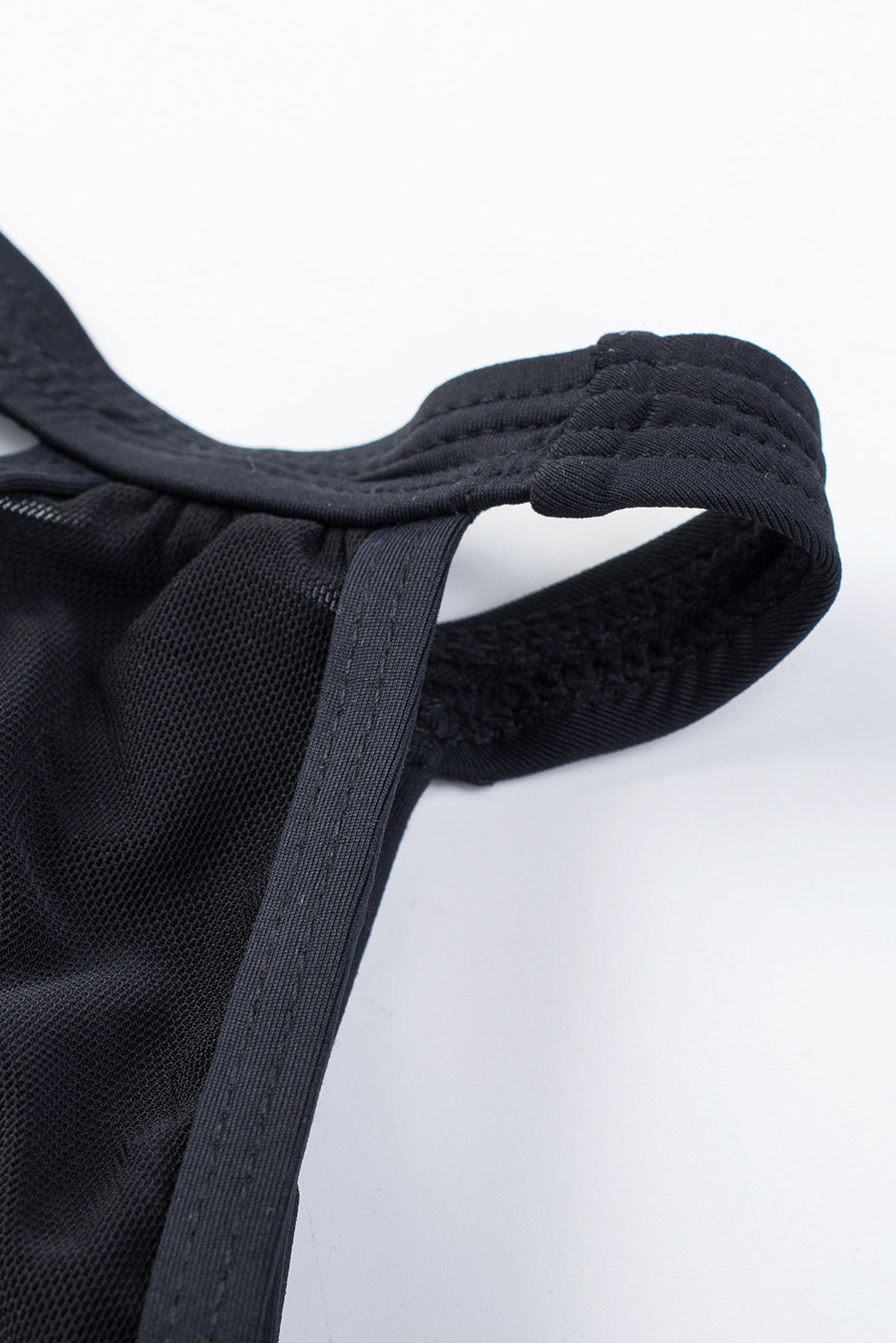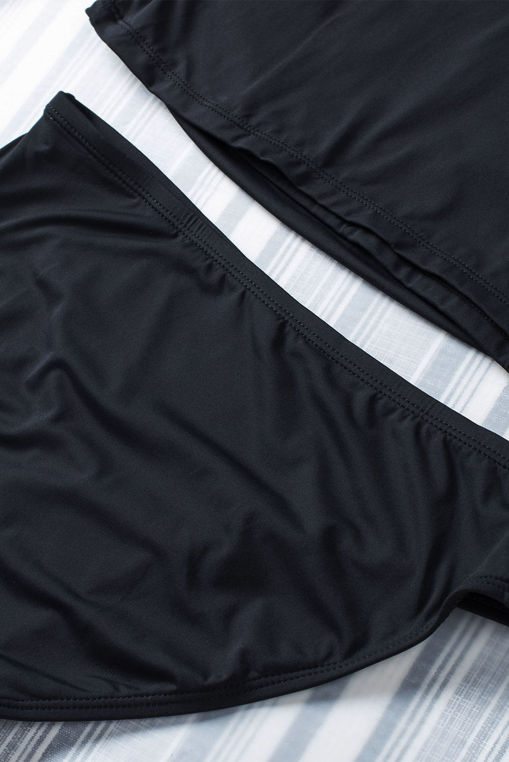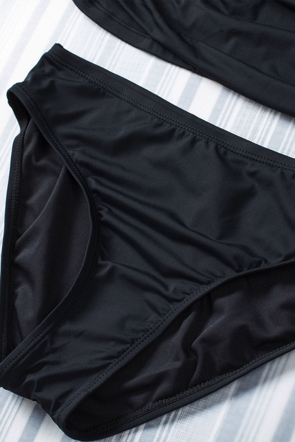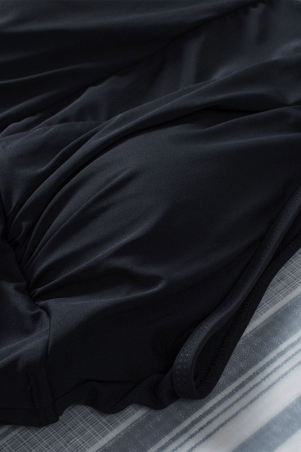 Black Cutout Mesh Ruched Tankini Swimsuit