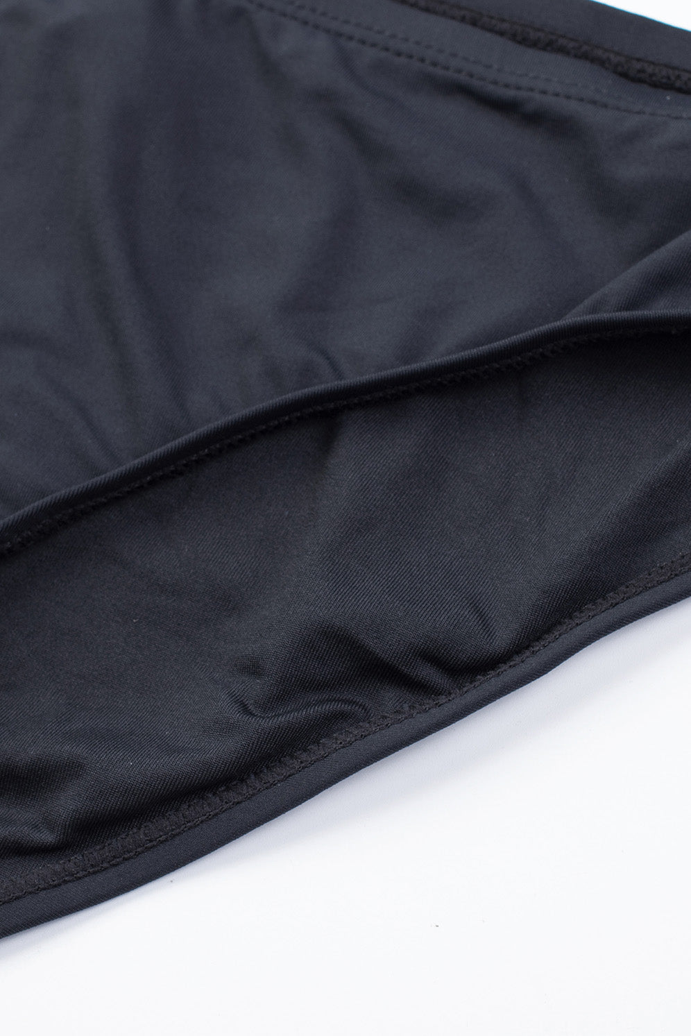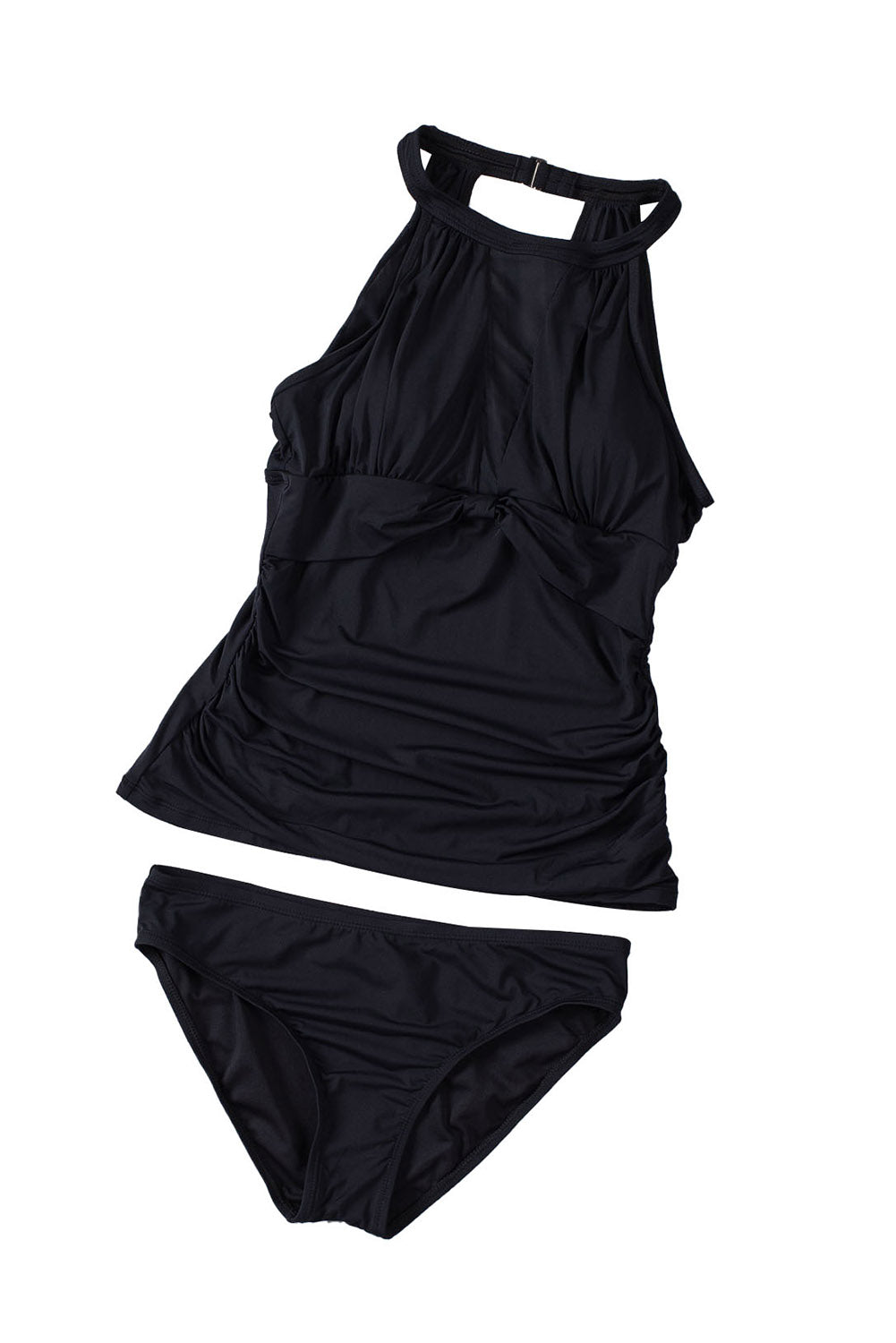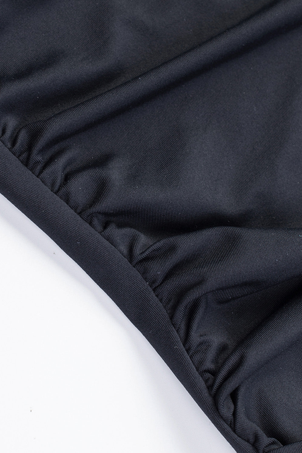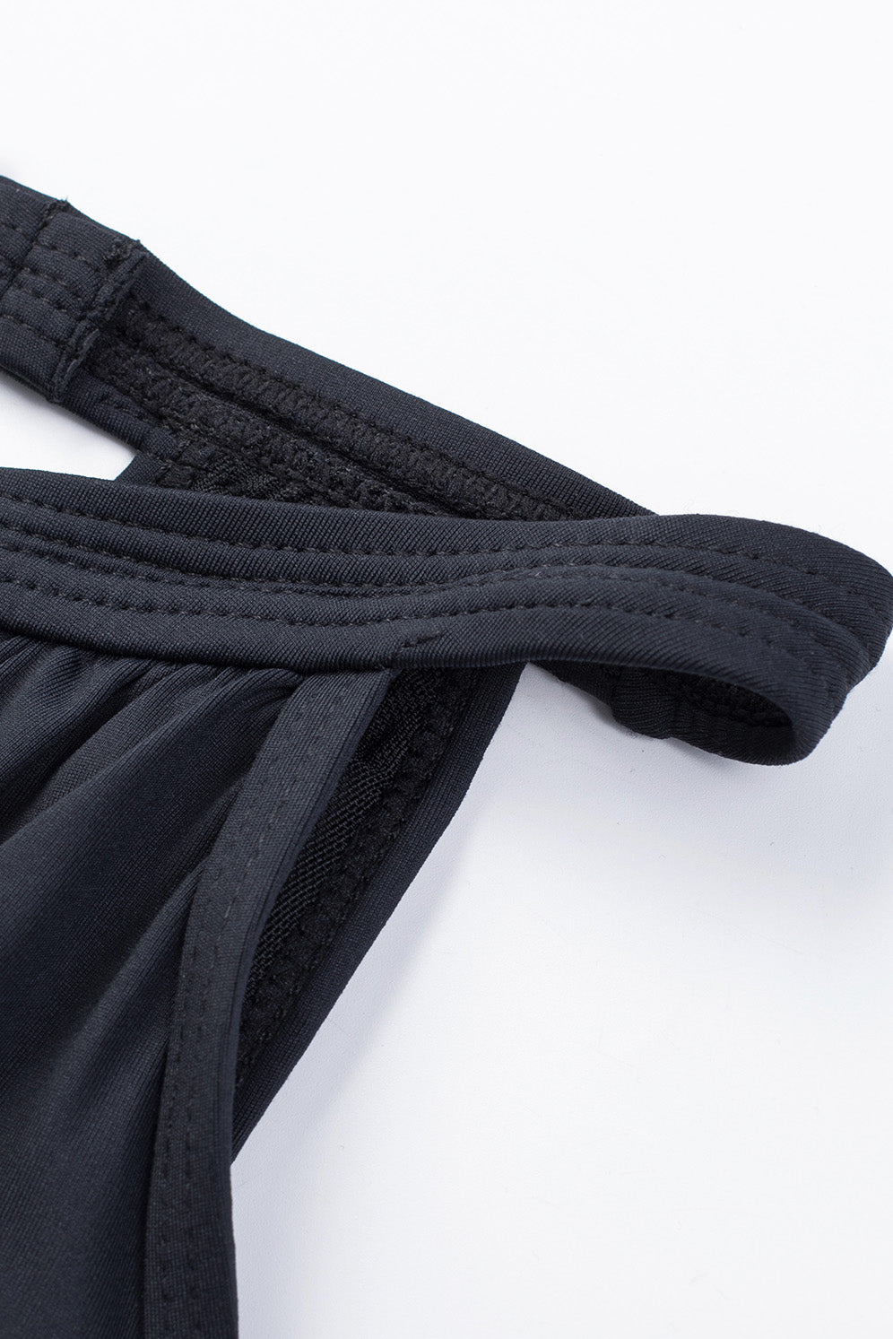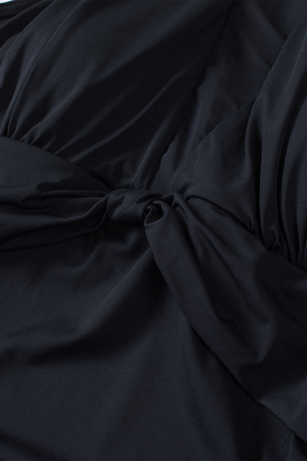Black Cutout Mesh Ruched Tankini Swimsuit