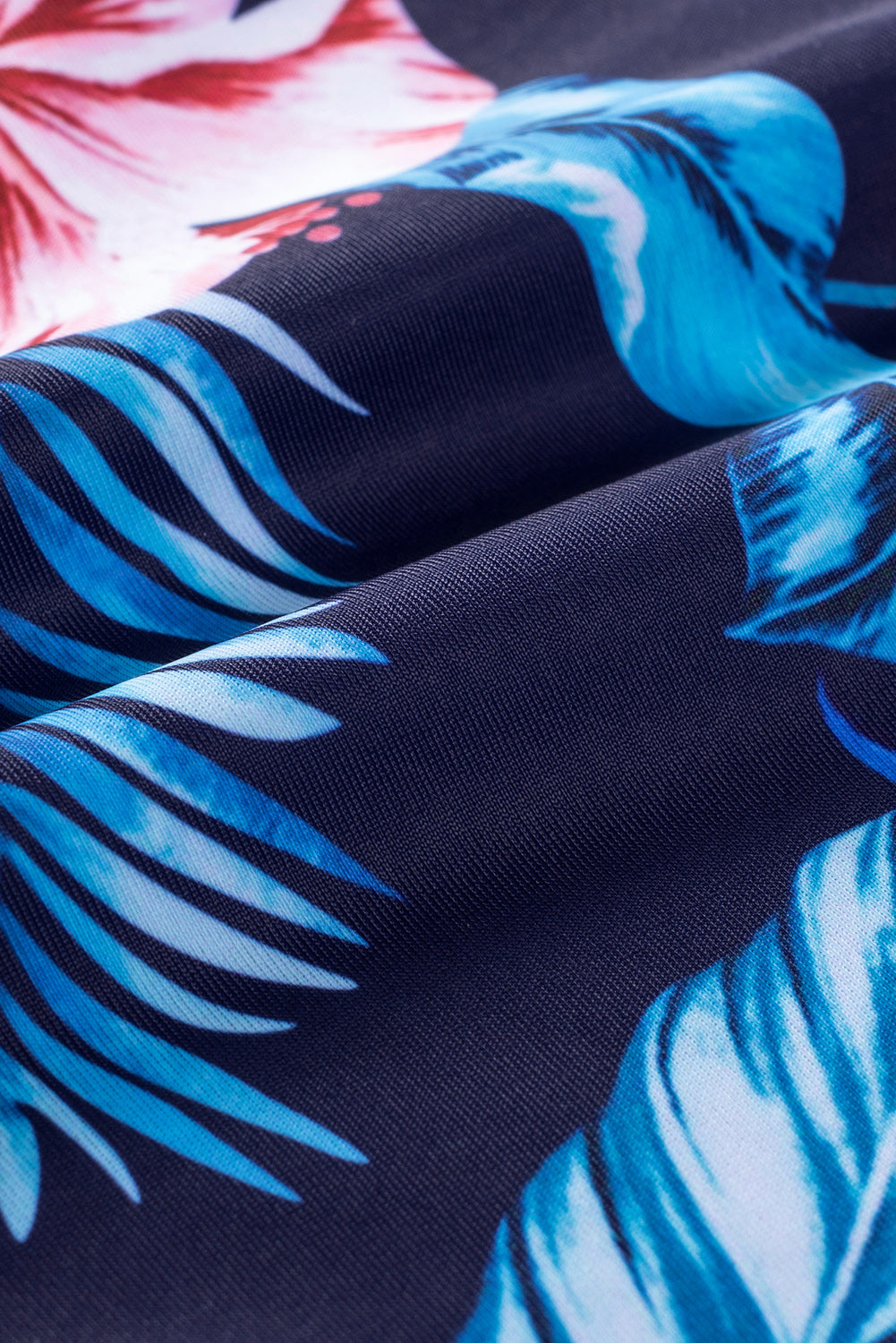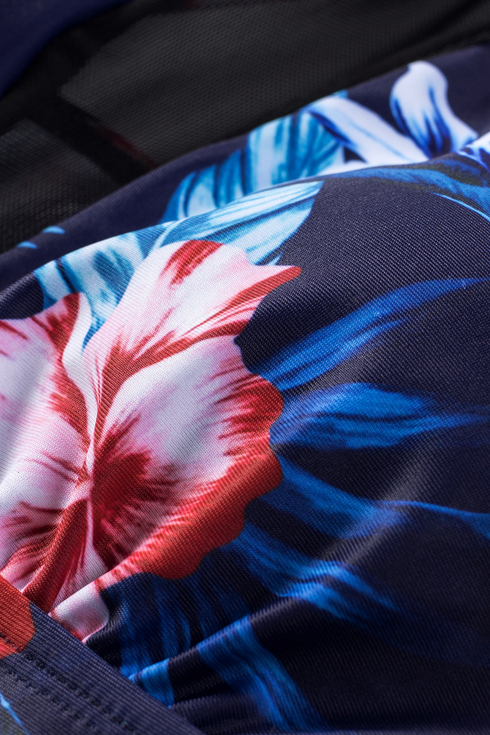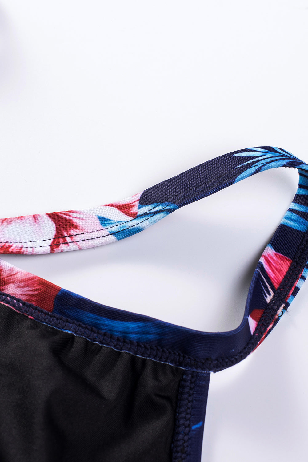 Black Floral Print Mesh Patchwork Criss Cross One-piece Swimsuit
