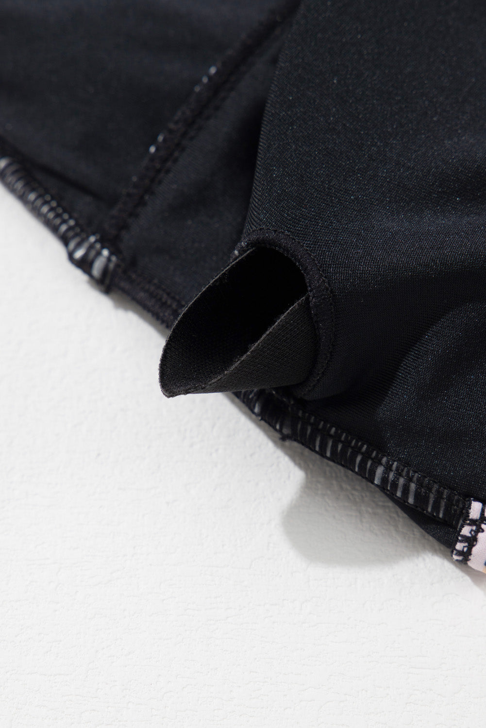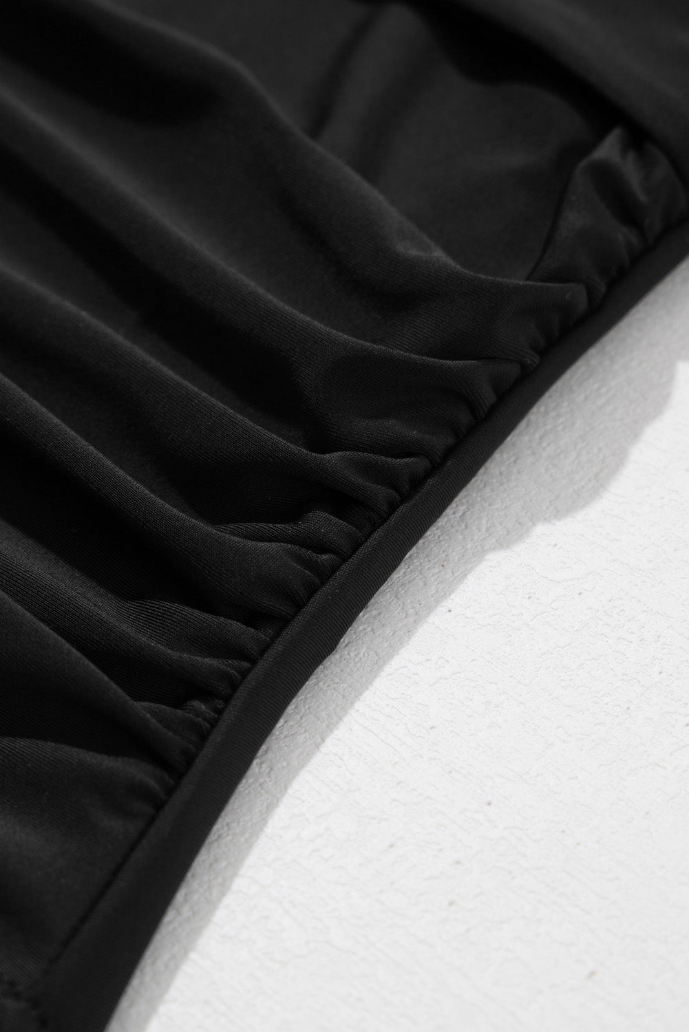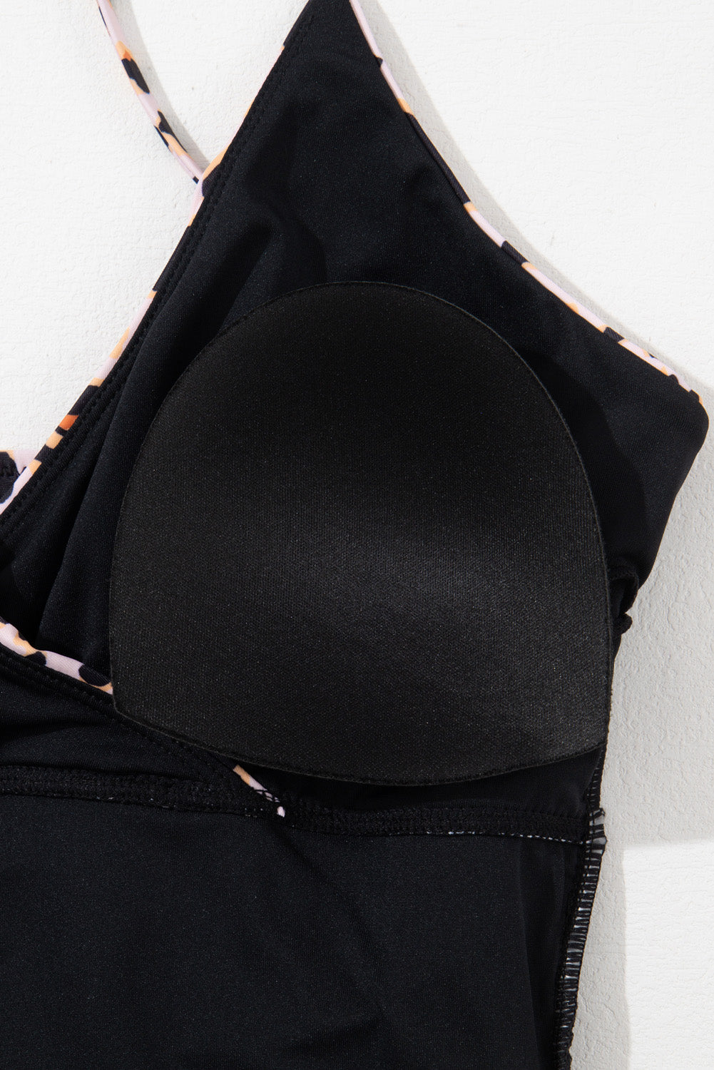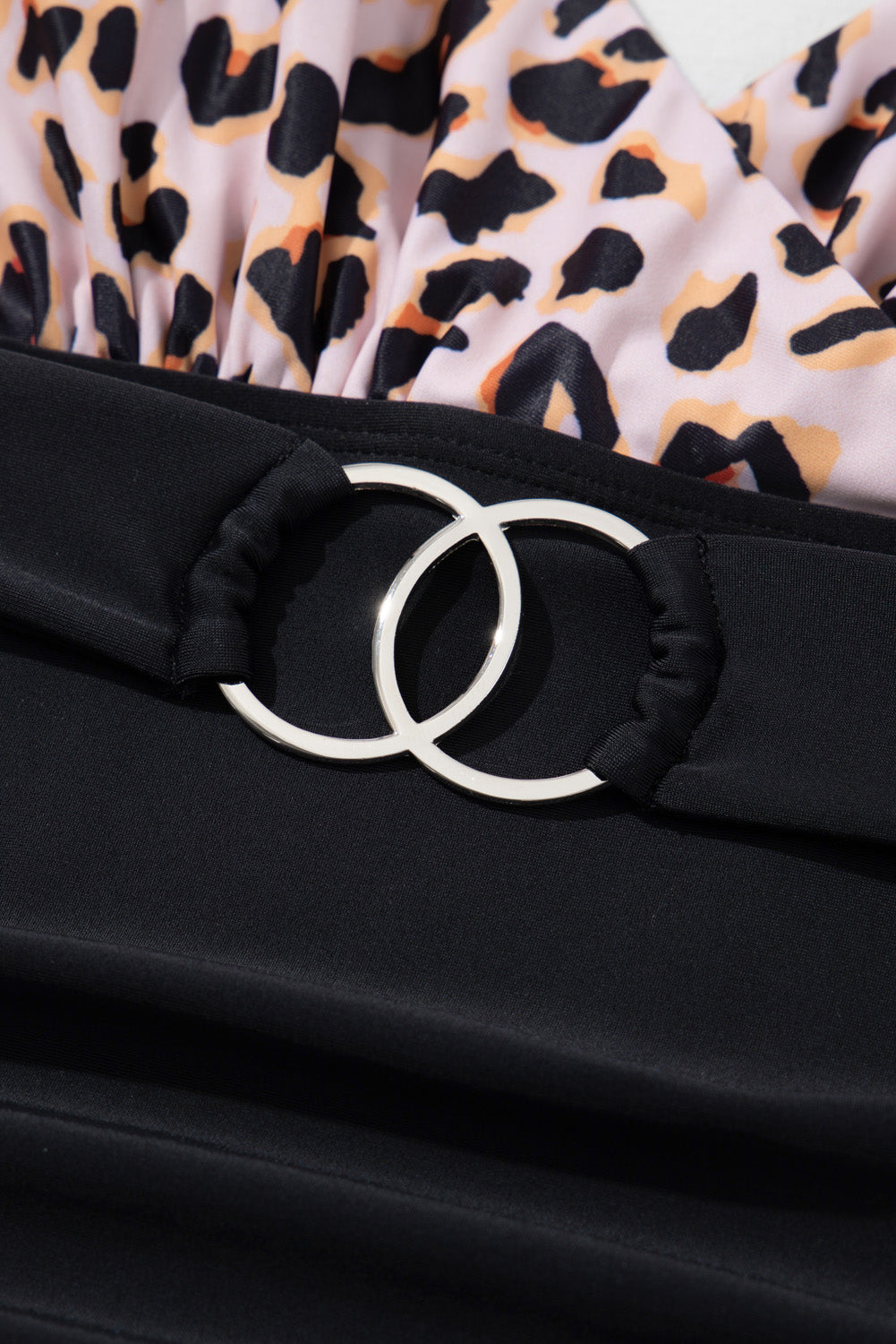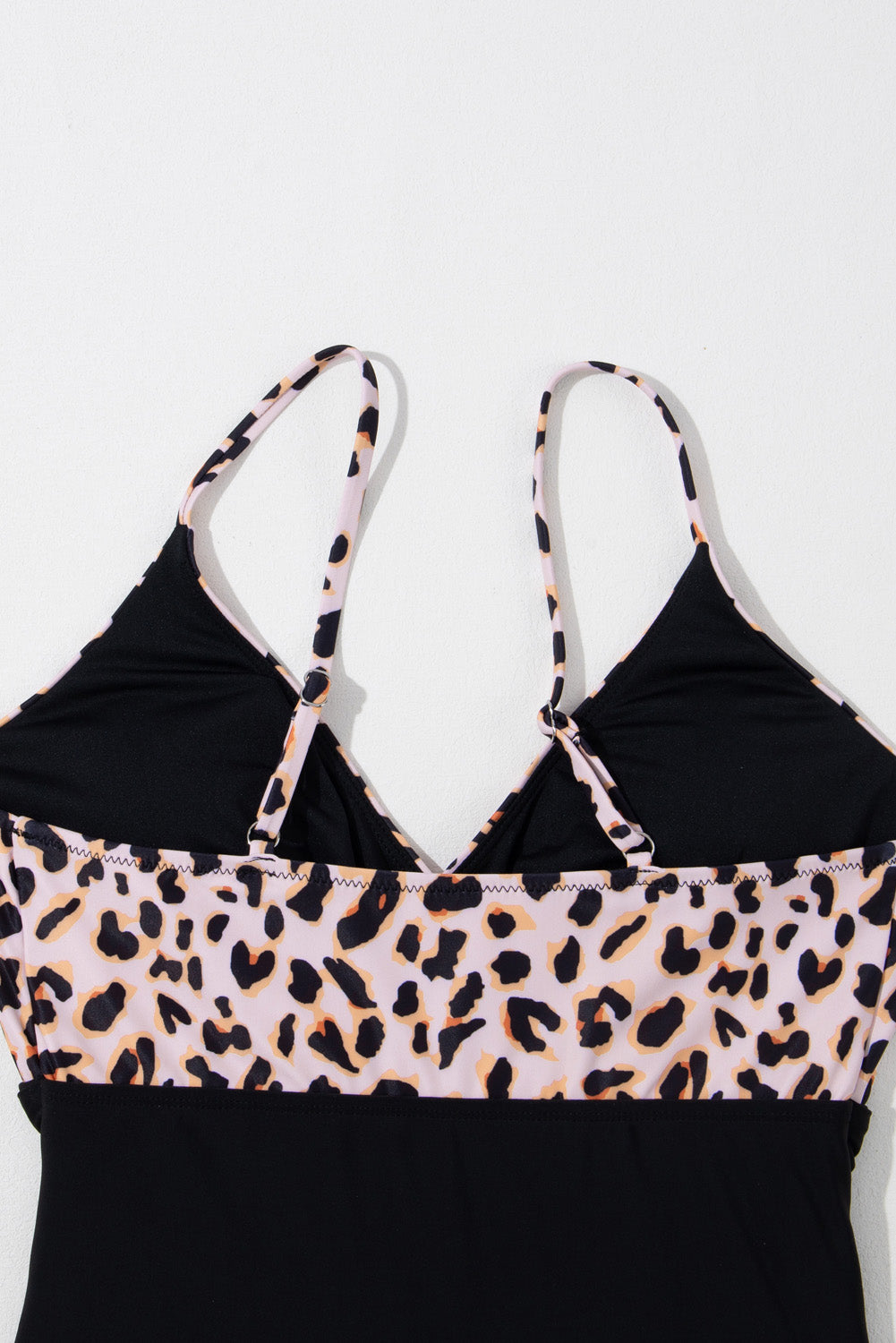 Black Leopard Print Ruched V Neck One Piece Swimsuit