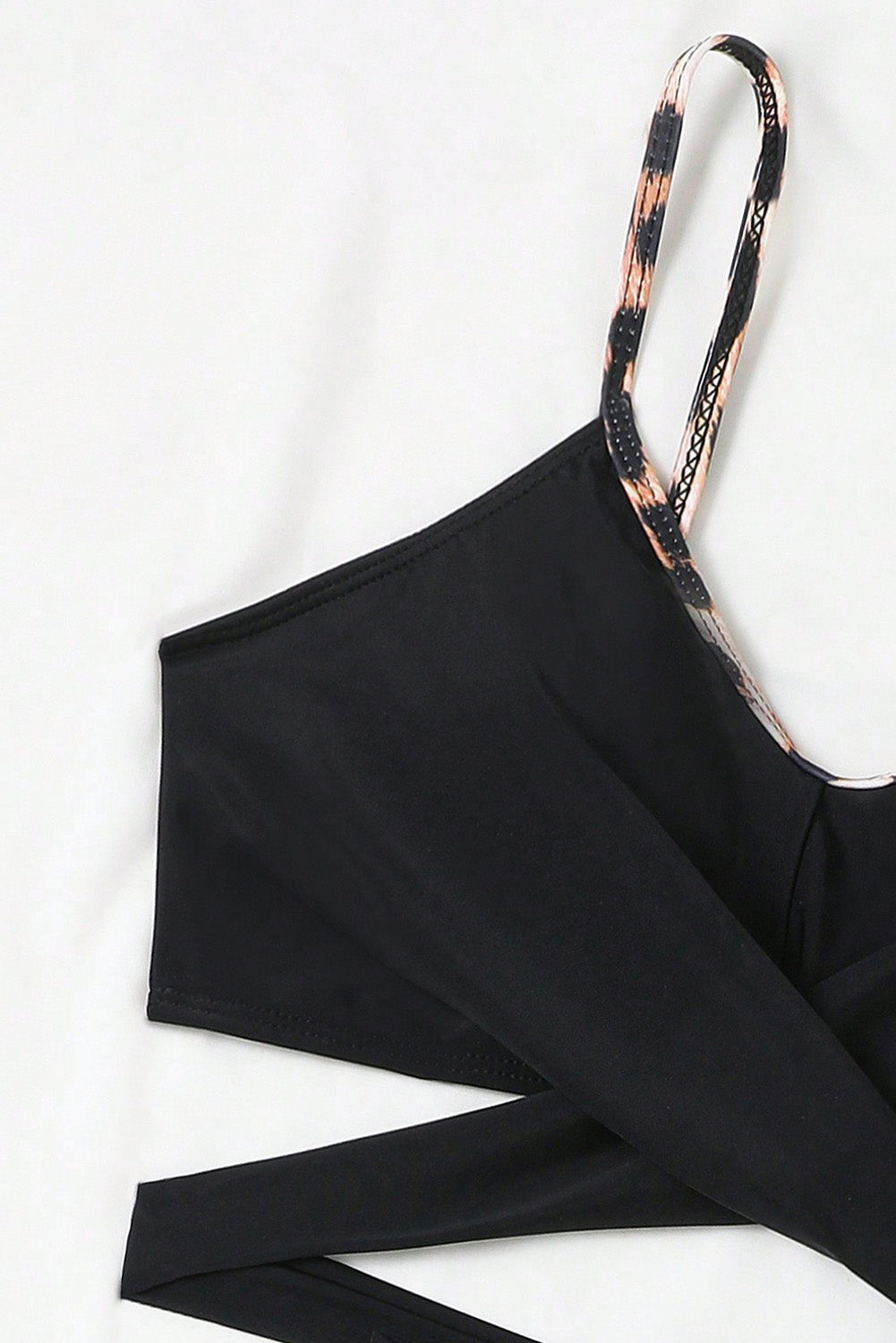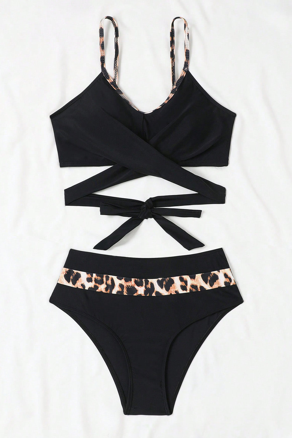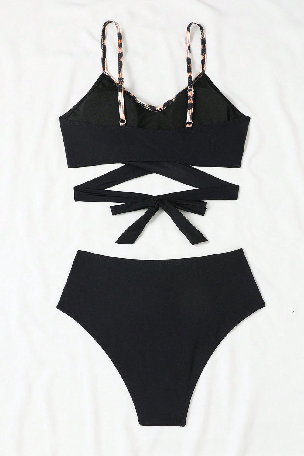 Black Leopard Splicing Criss Cross Tie Spaghetti Straps Bikini