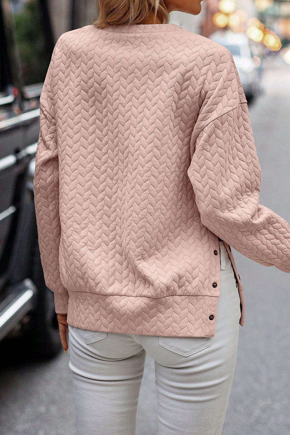 Black Quilted Snap Button Detail Drop Shoulder Sweatshirt