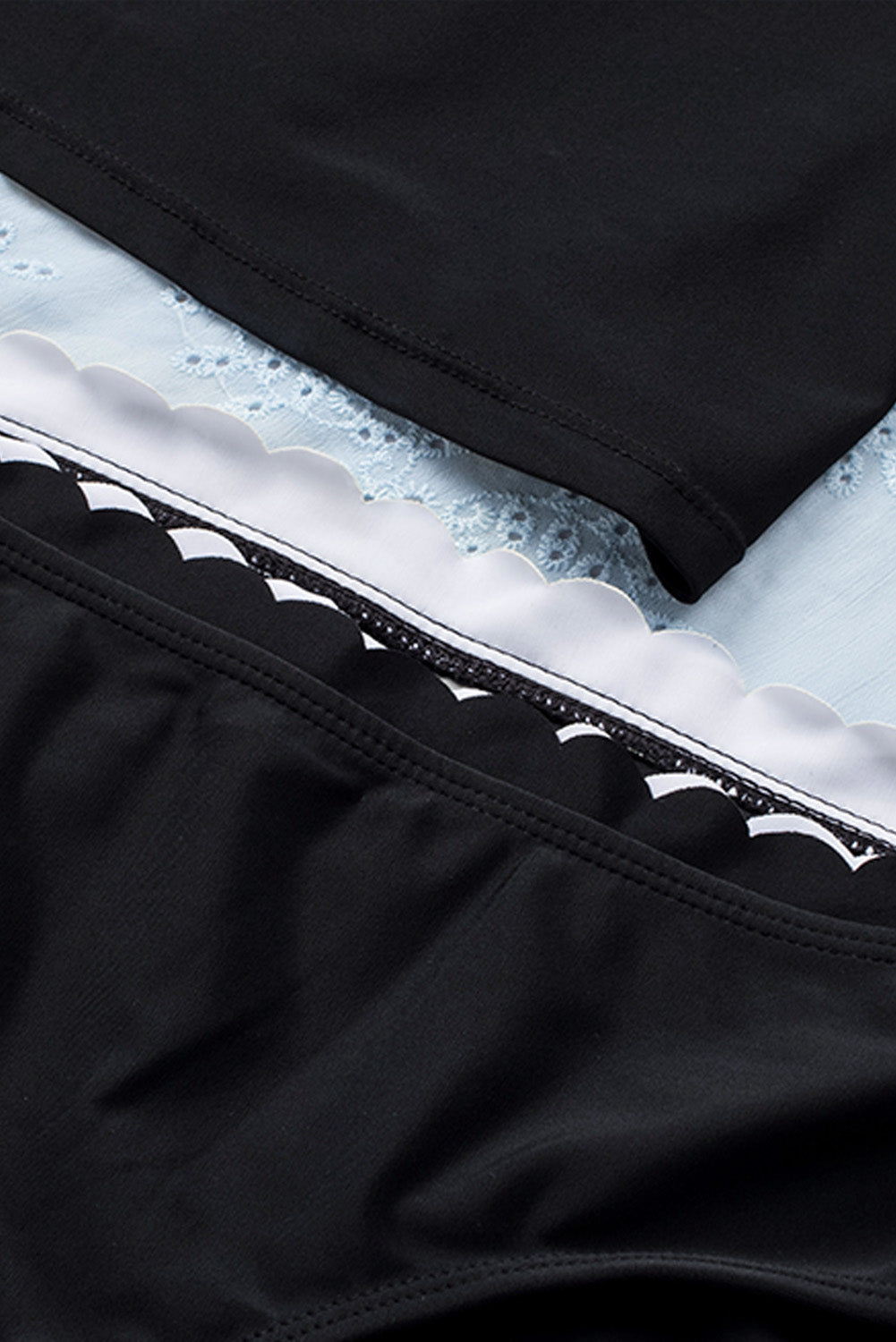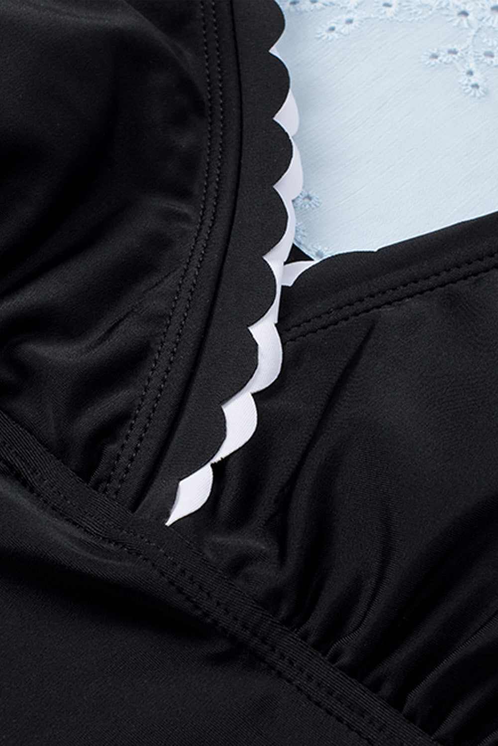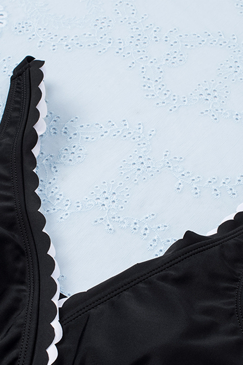 Black Scalloped Edge V Neck Tankini Swimsuit