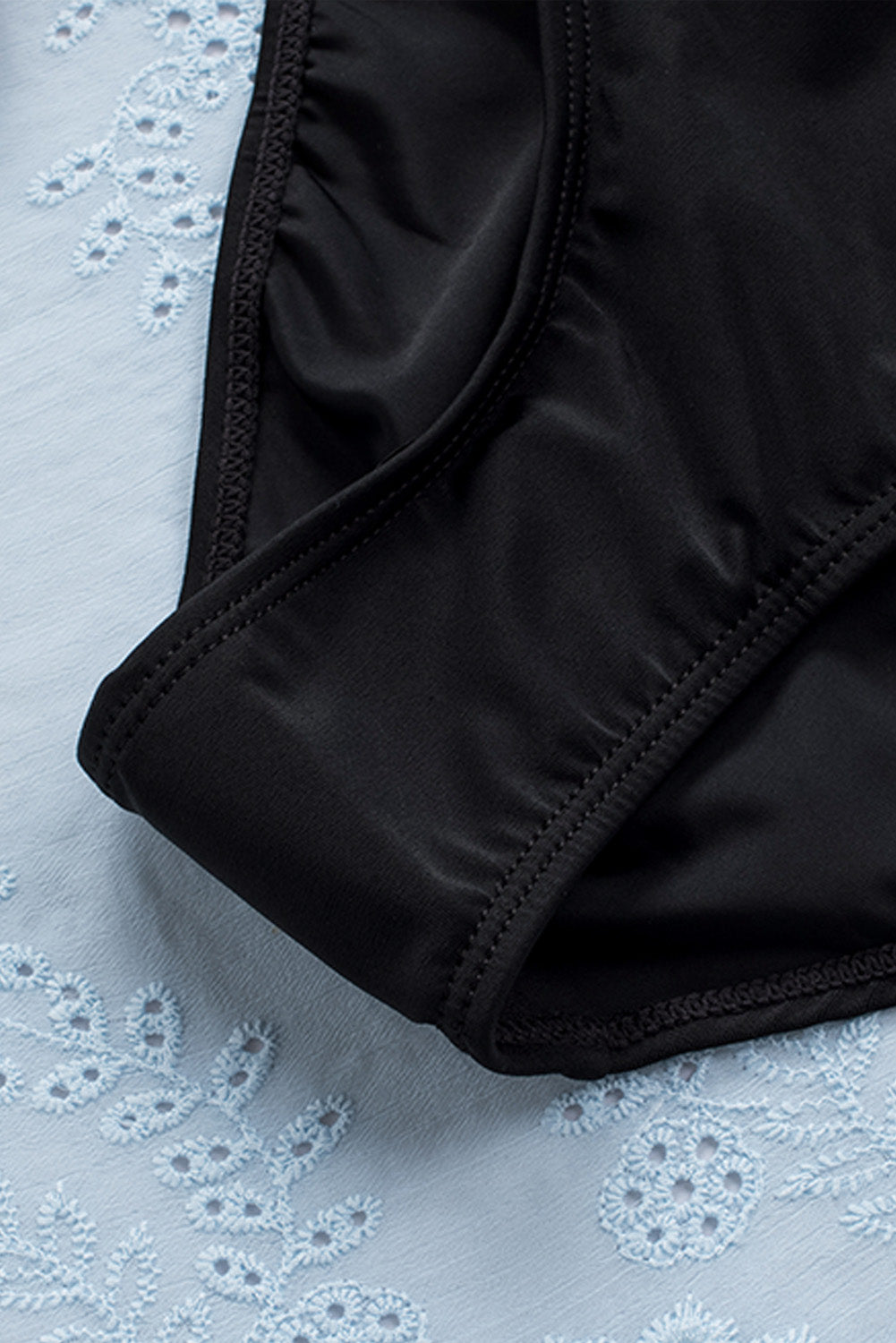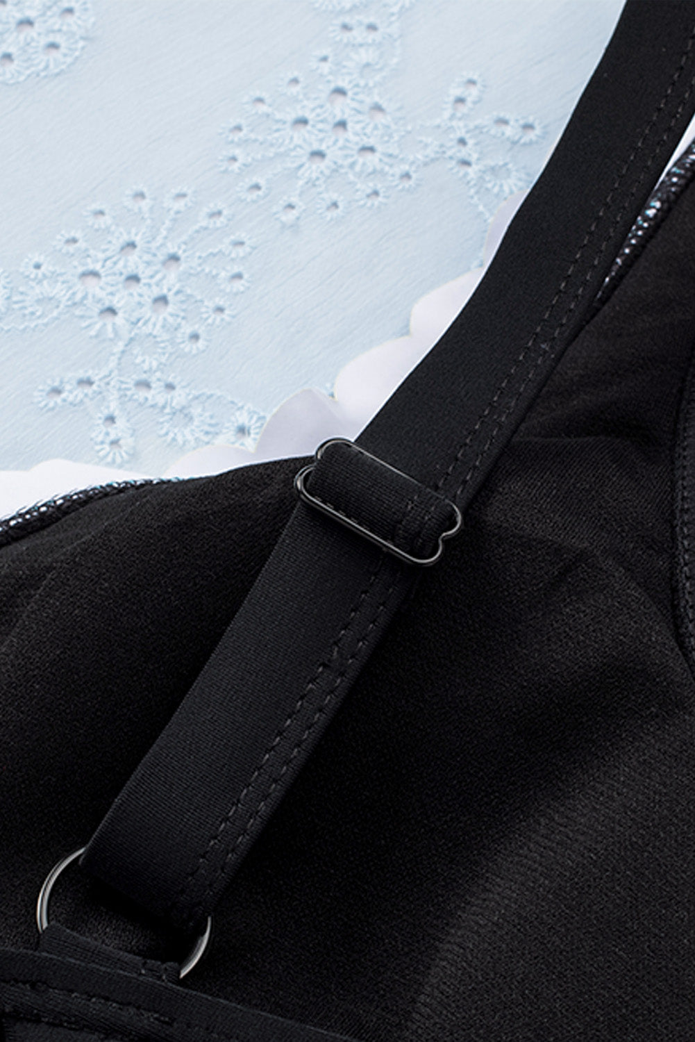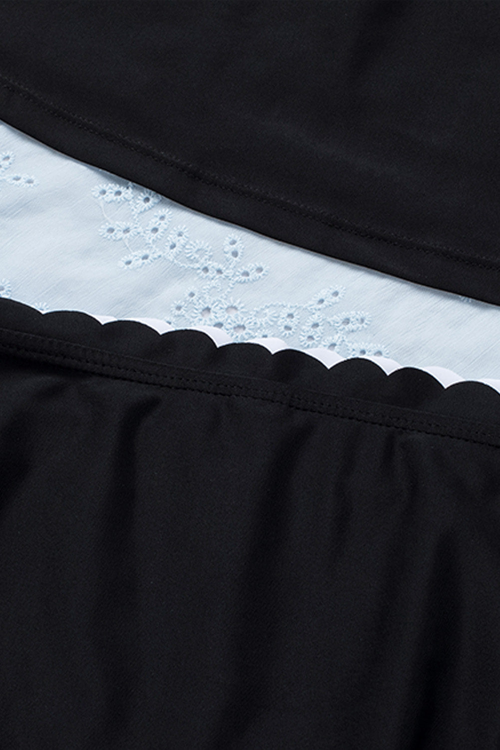 Black Scalloped Edge V Neck Tankini Swimsuit
