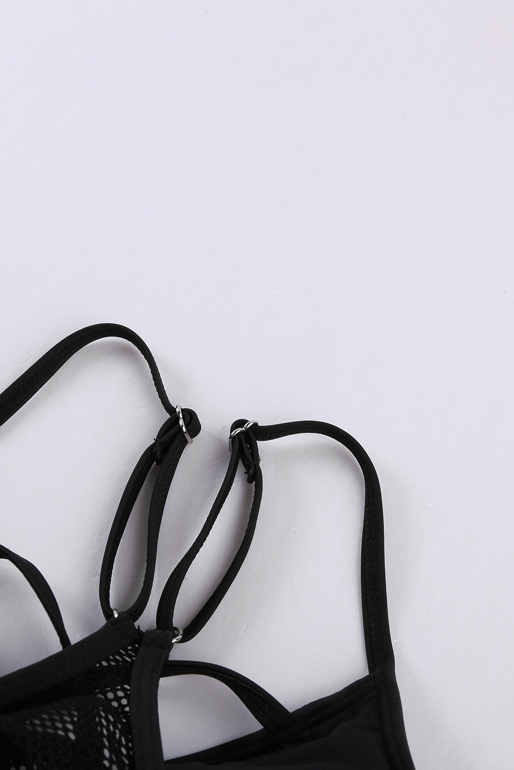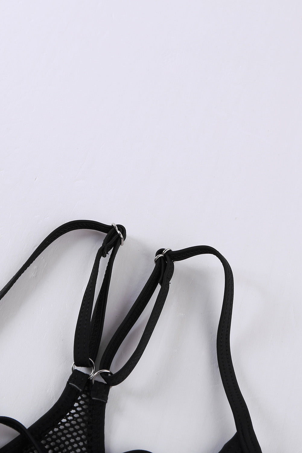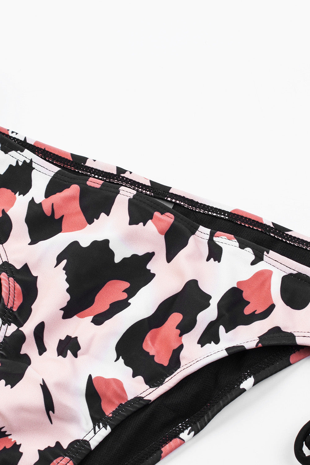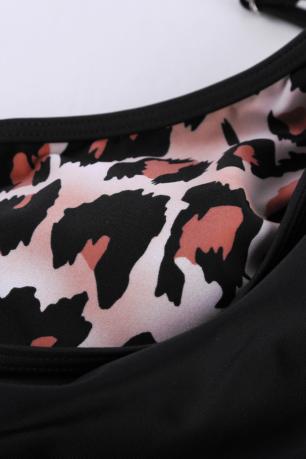 Black Sexy Leopard Spaghetti Blouson Tankini Set