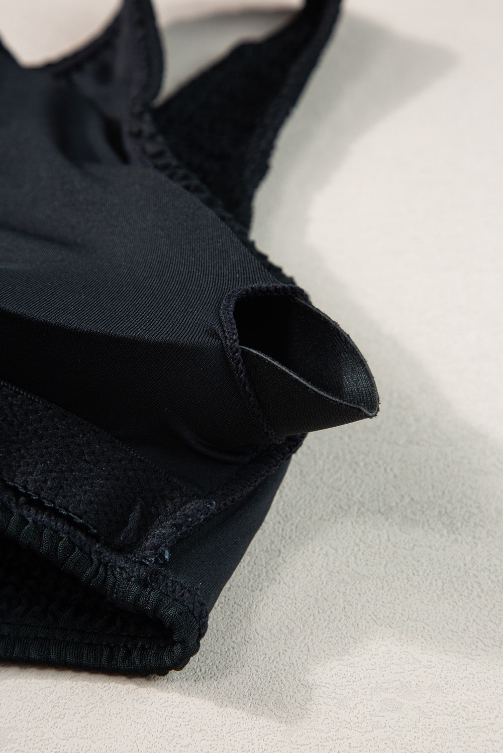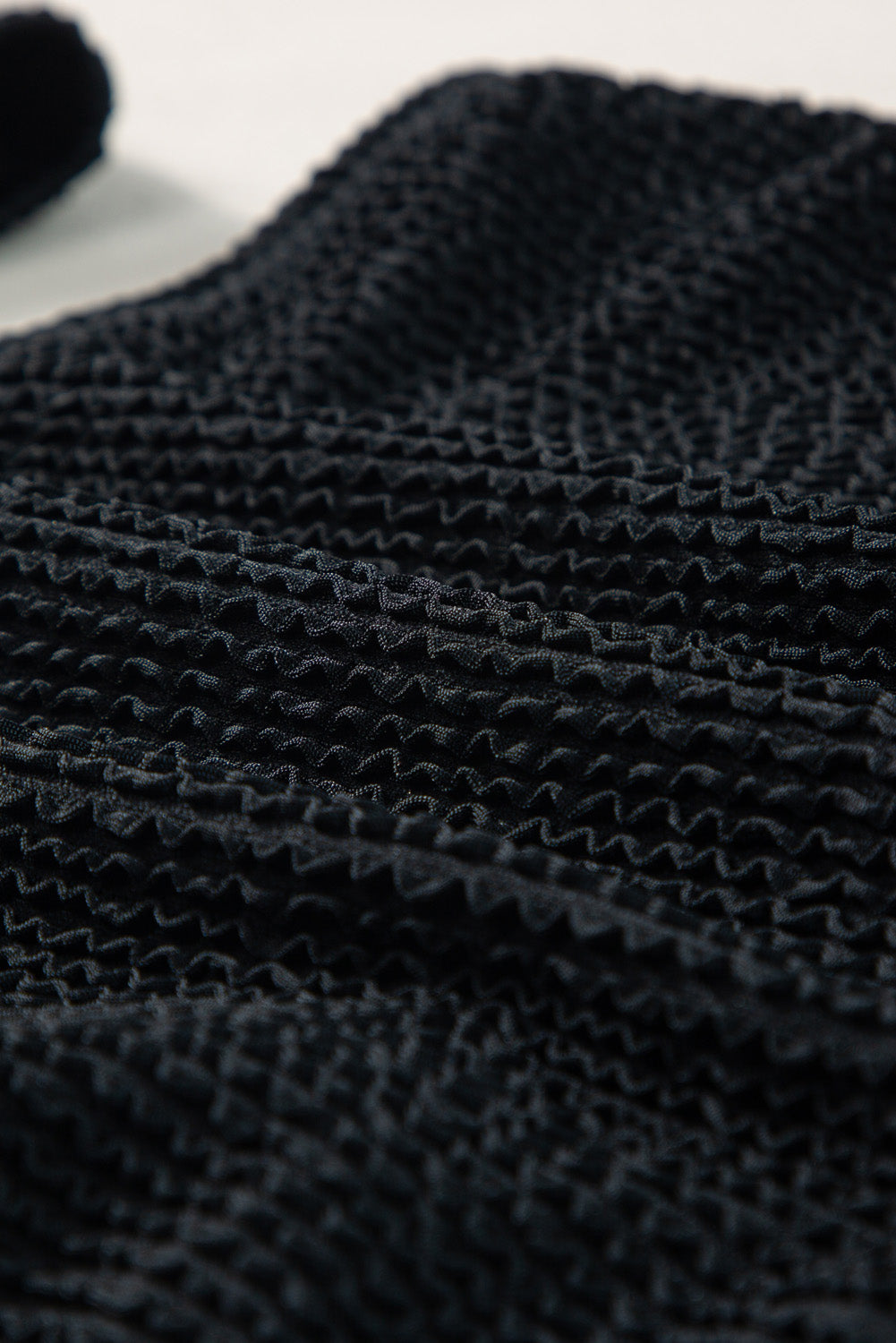 Black Solid Textured Cut Out Asymmetric One Piece Swimsuit
