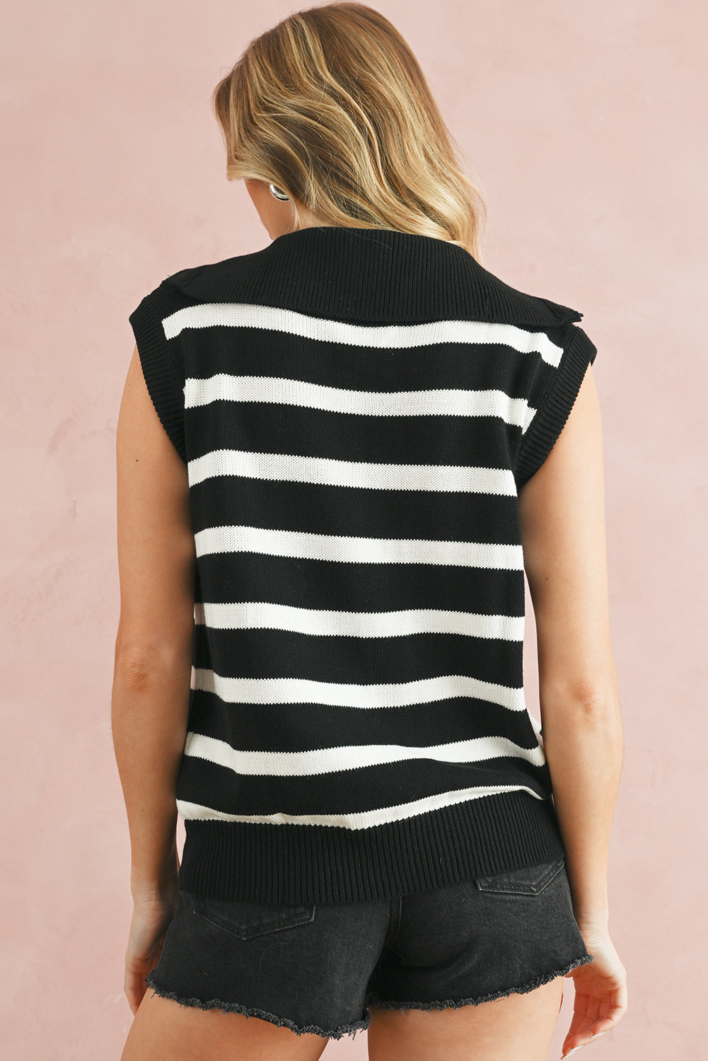 Black Stripe Sleeveless Zipped Collar Knit Top