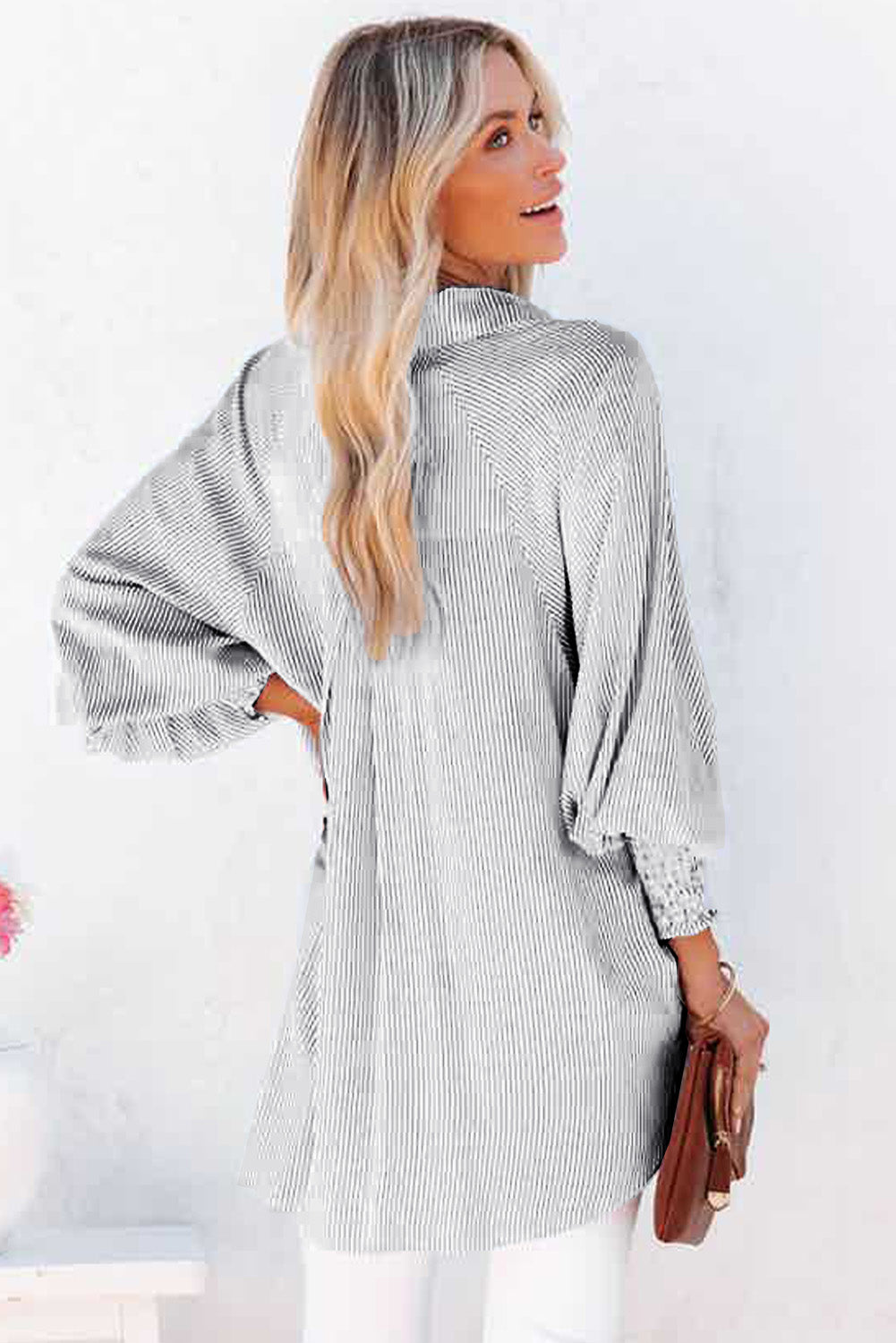 •Features: Relaxed fit, button front closure, long sleeves with elasticated cuffs, all-over stripes print.