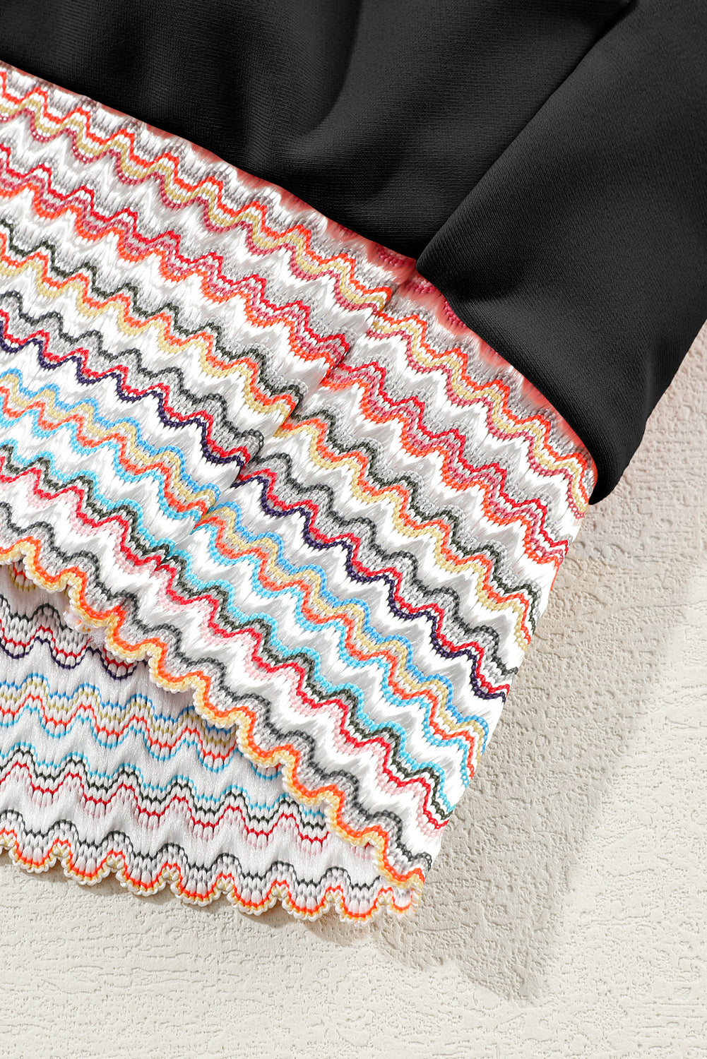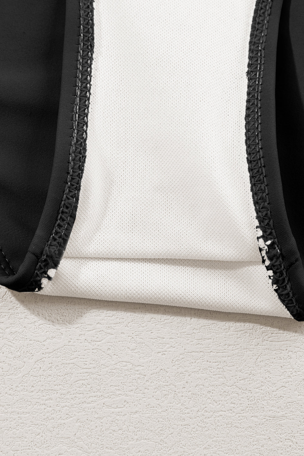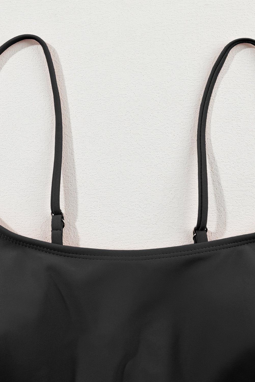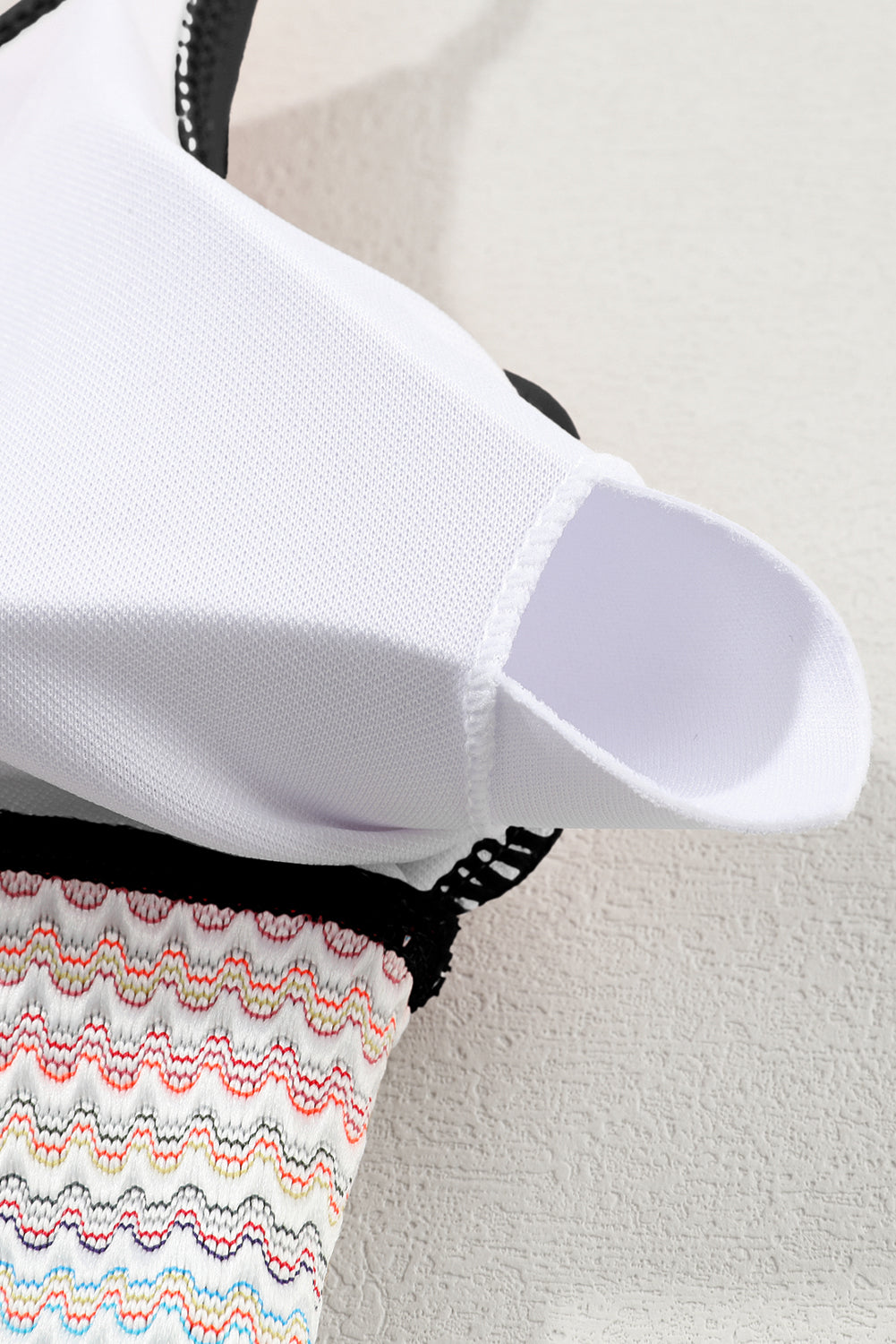 Black Striped Patchwork Spaghetti Strap High Waist Bikini Set