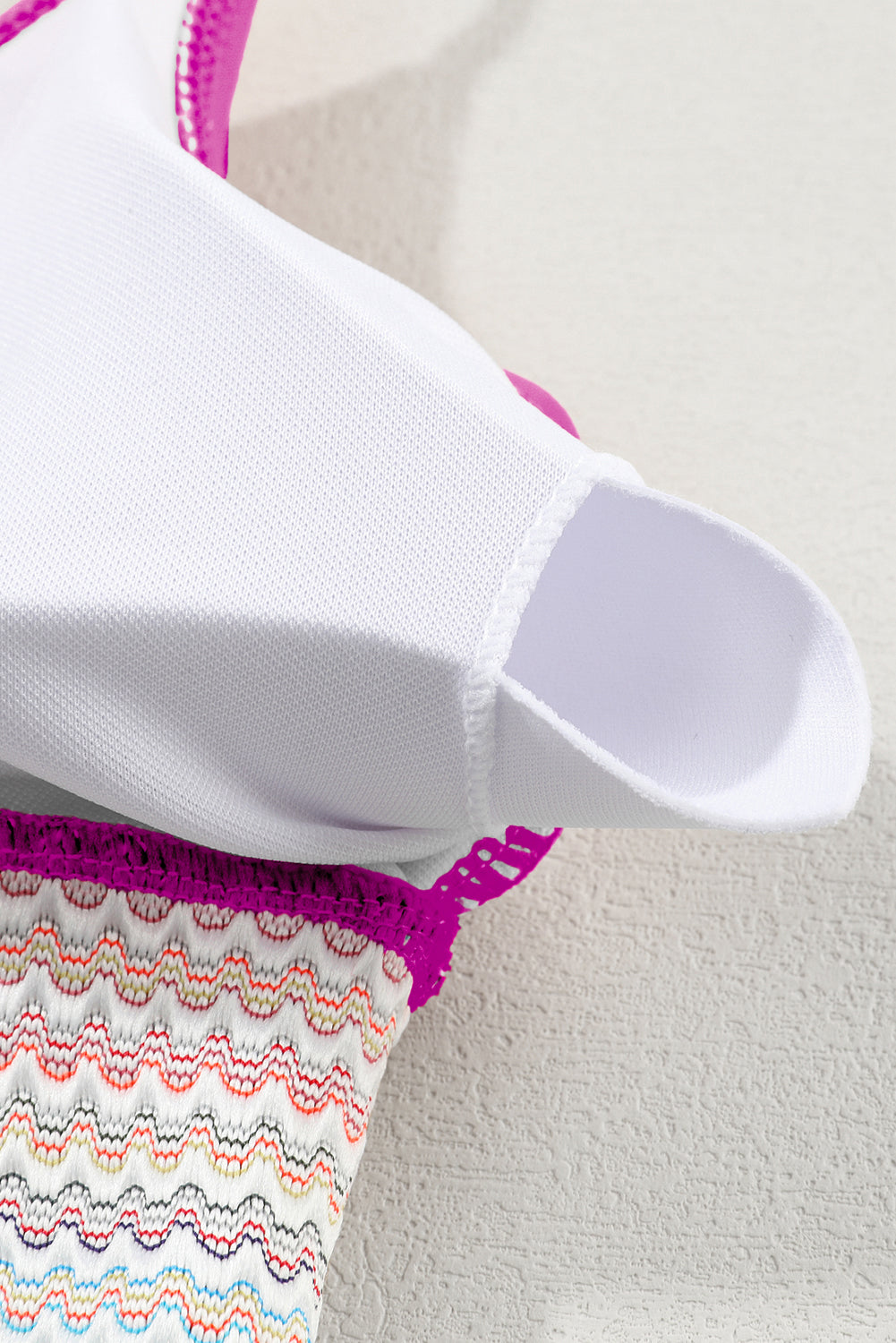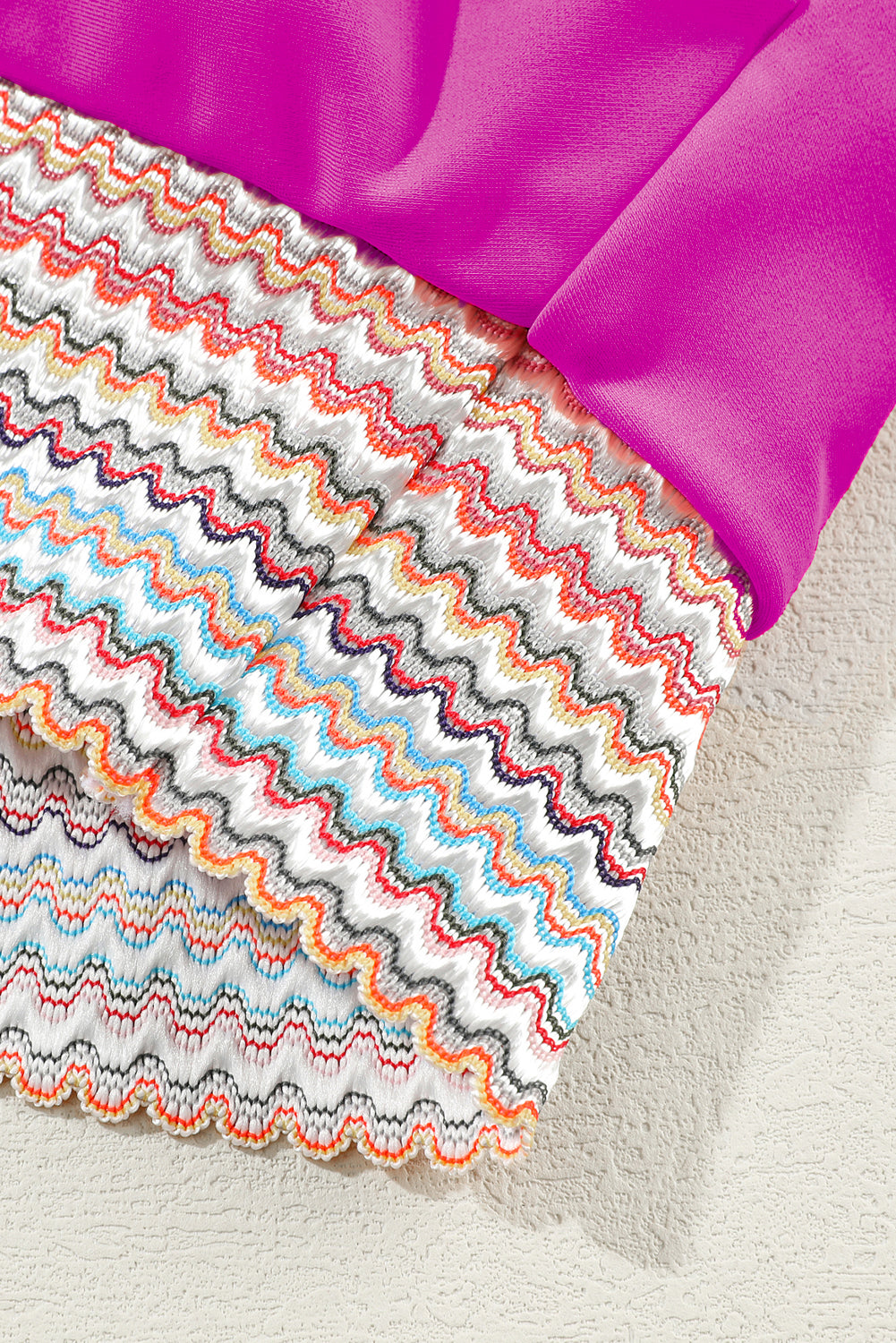 - With its unique striped patchwork design, the swimsuit is very trendy and chic.