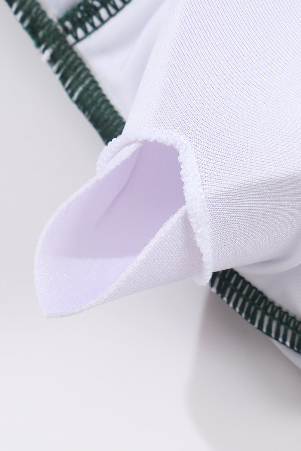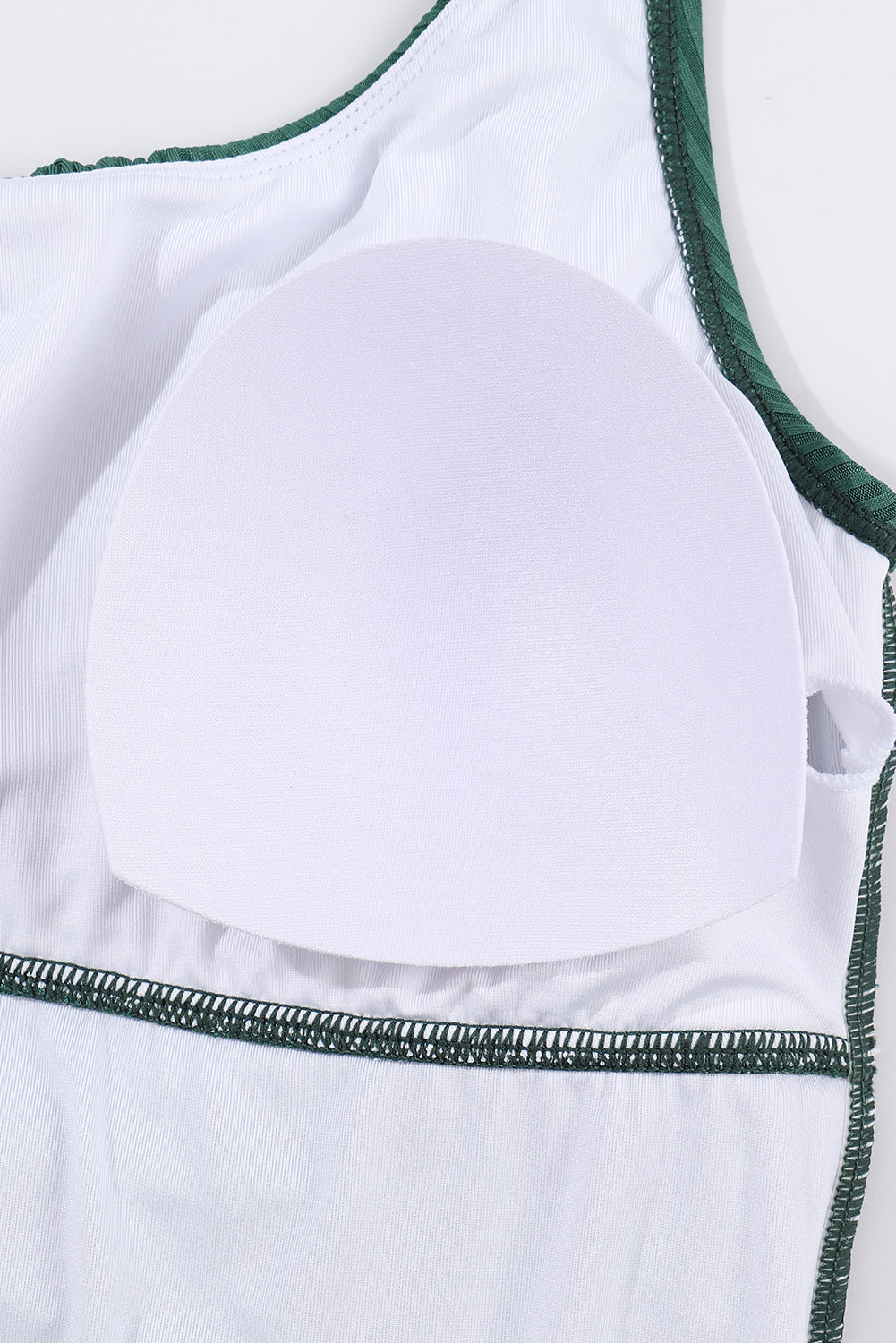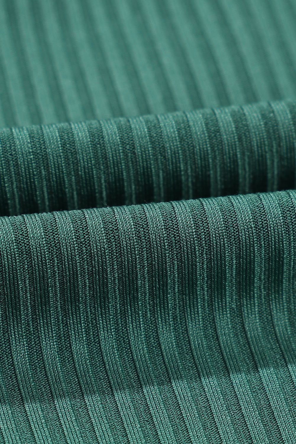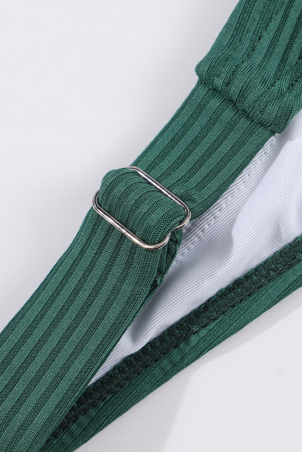 Blackish Green Ruched U Neck Backless Ribbed Tankini Set
