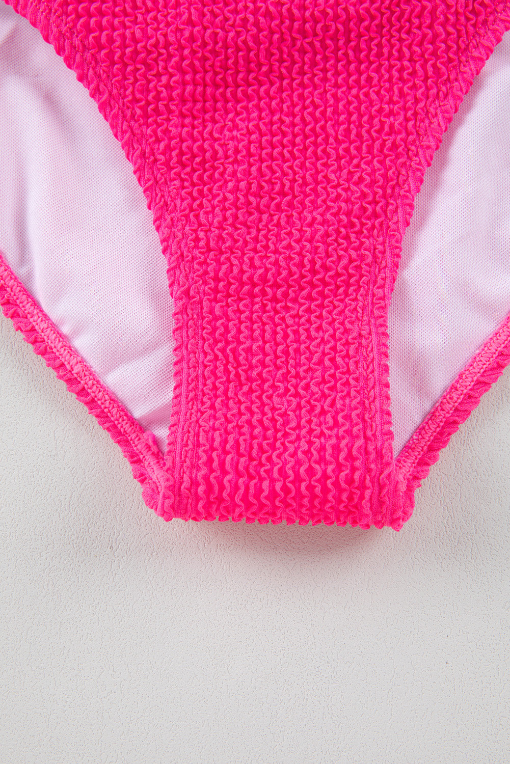 Bright Pink Solid Textured Cut Out Asymmetric One Piece Swimsuit