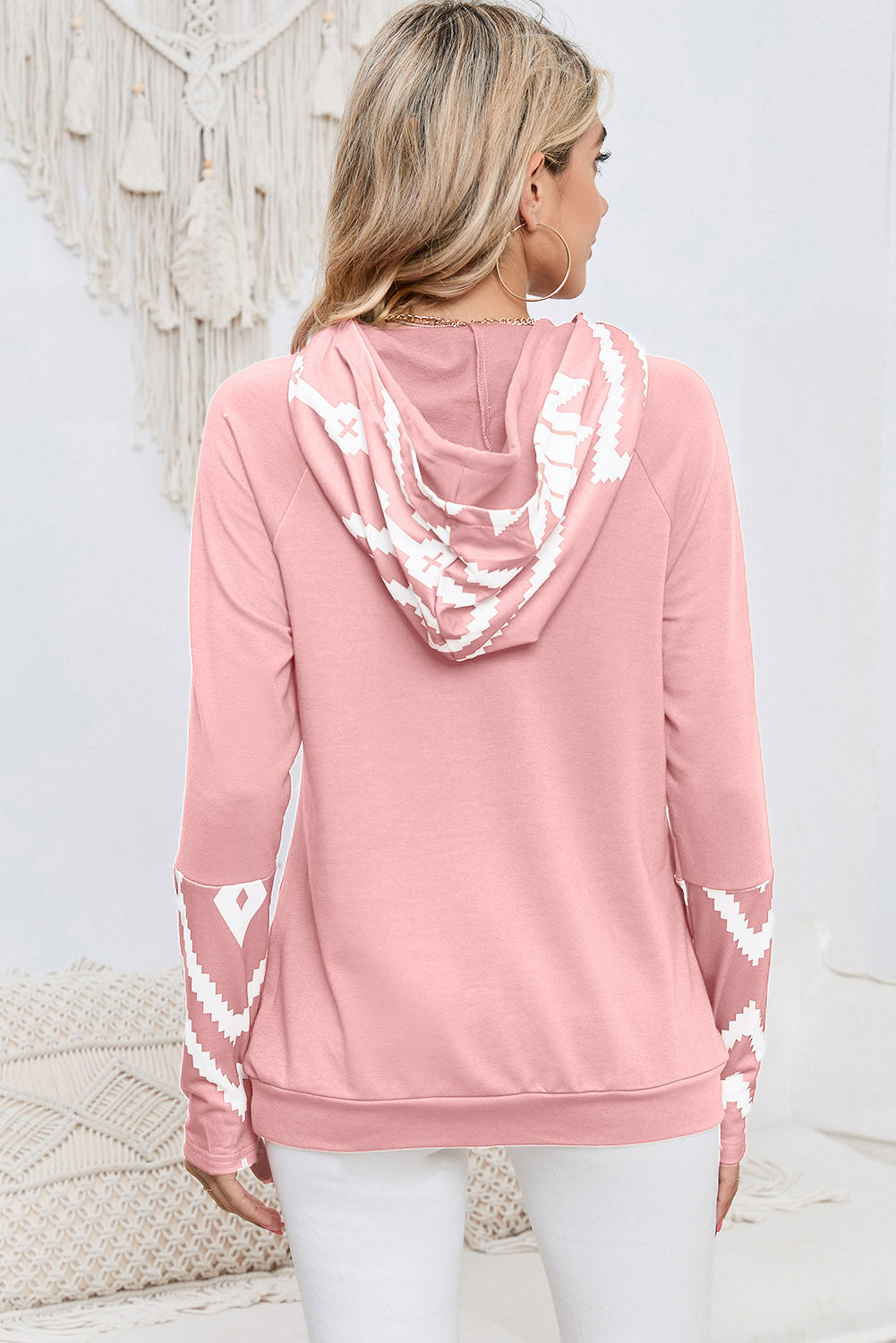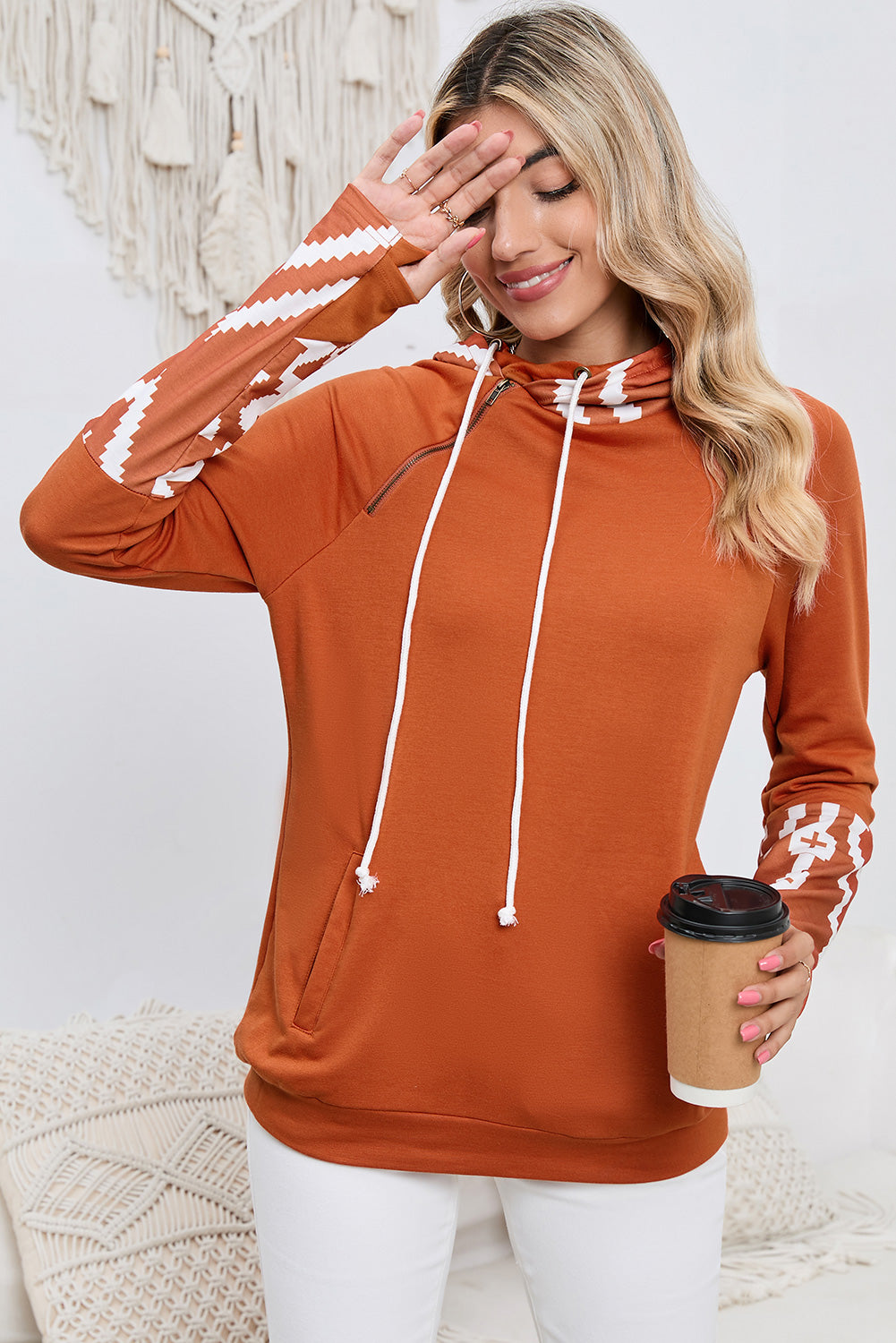Brown Aztec Pattern Pullover Hoodie with Pockets