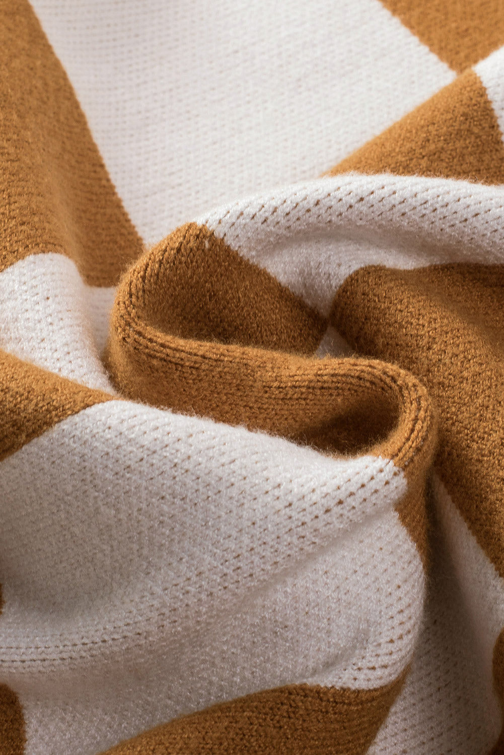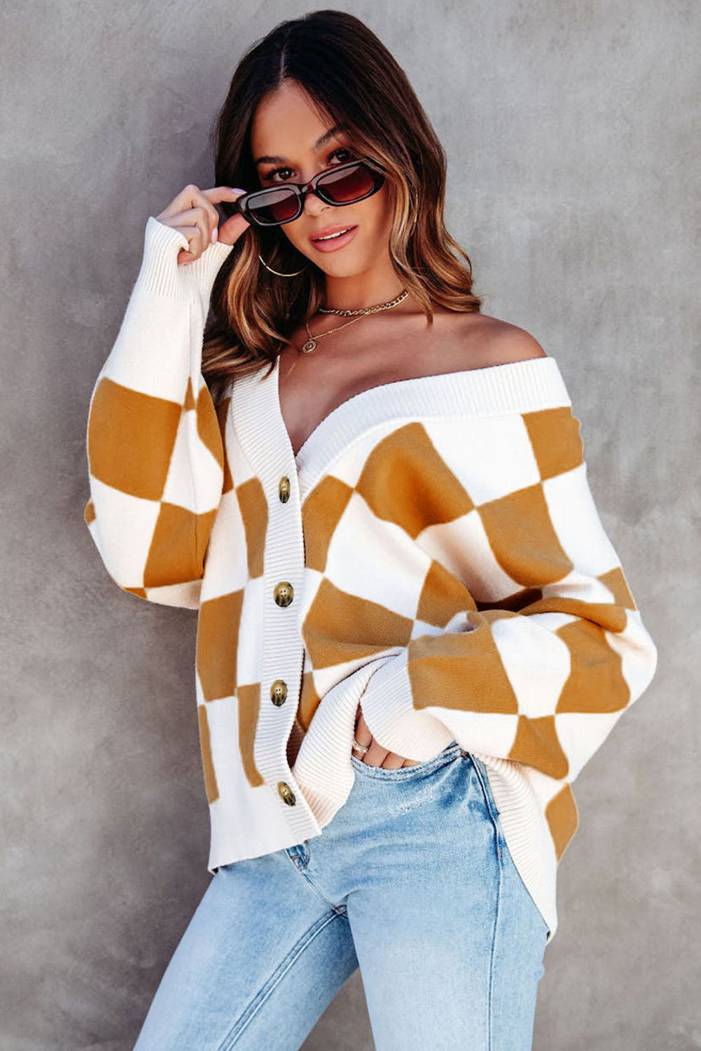 Brown Colorblock Plaid Ribbed Knit Button Up Cardigan