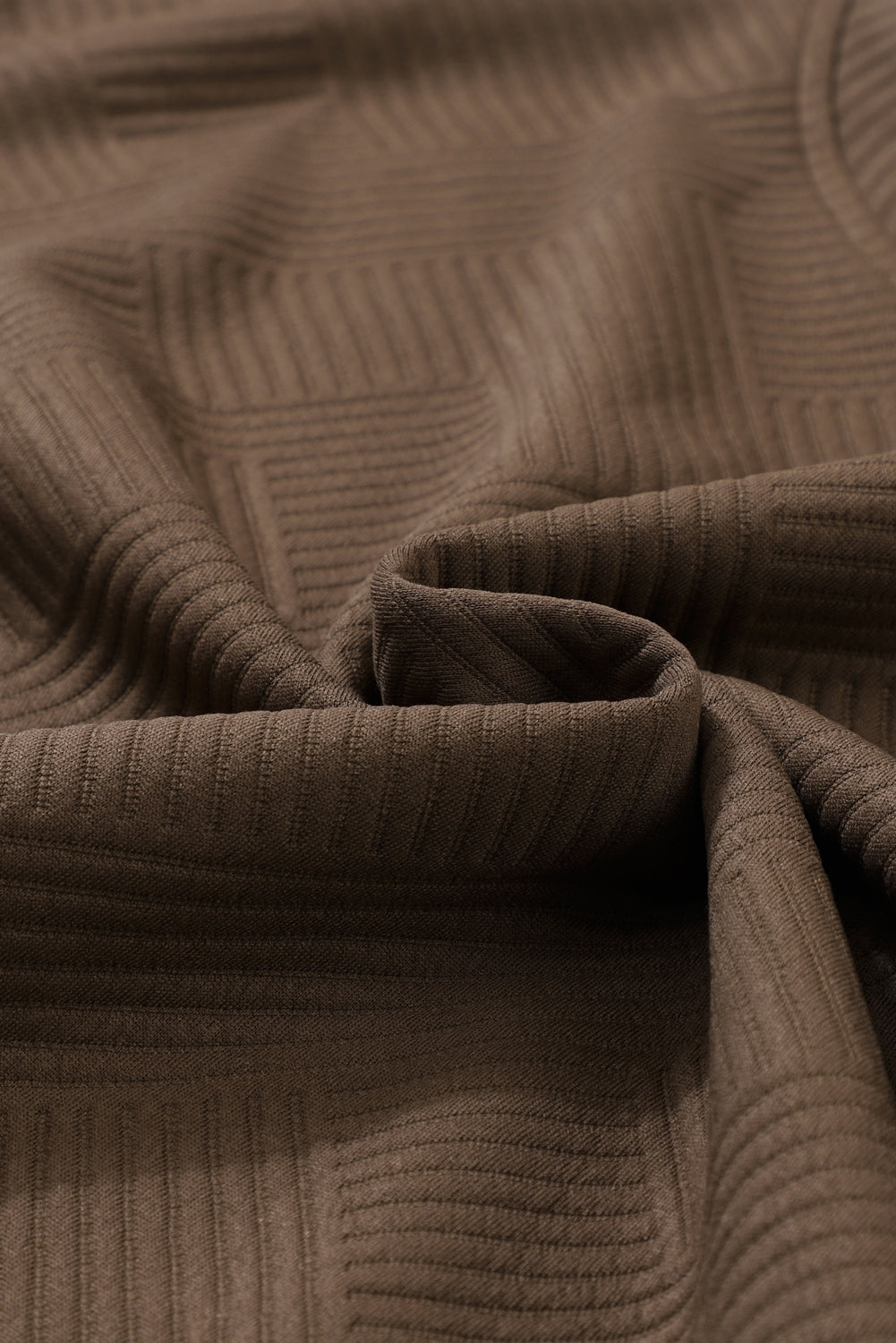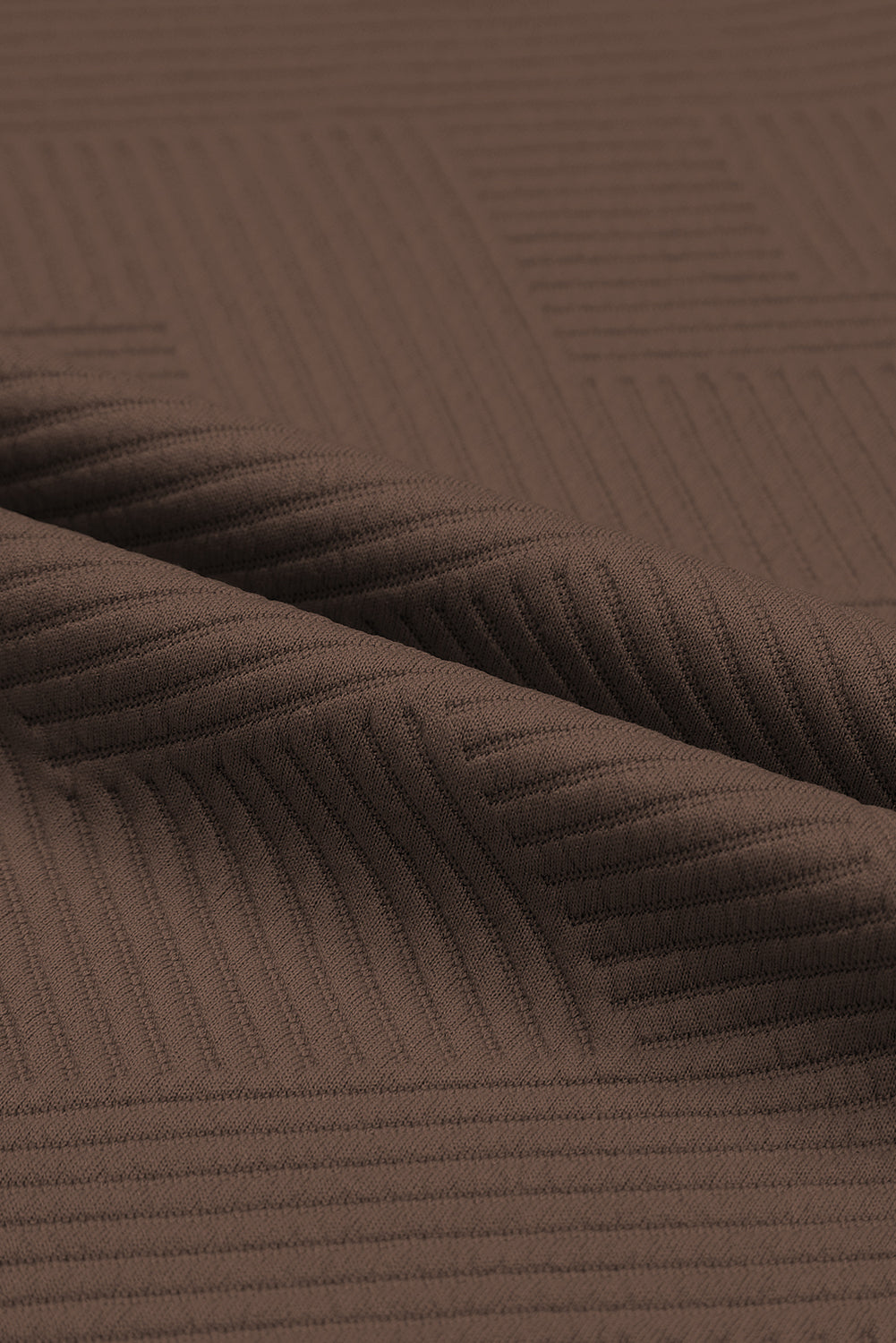 Brown Textured Loose Fit T Shirt and Drawstring Pants Set