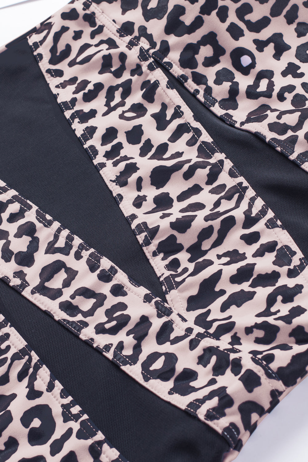Cheetah Asymmetrical Mesh Splicing High Leg One Piece Swimsuit