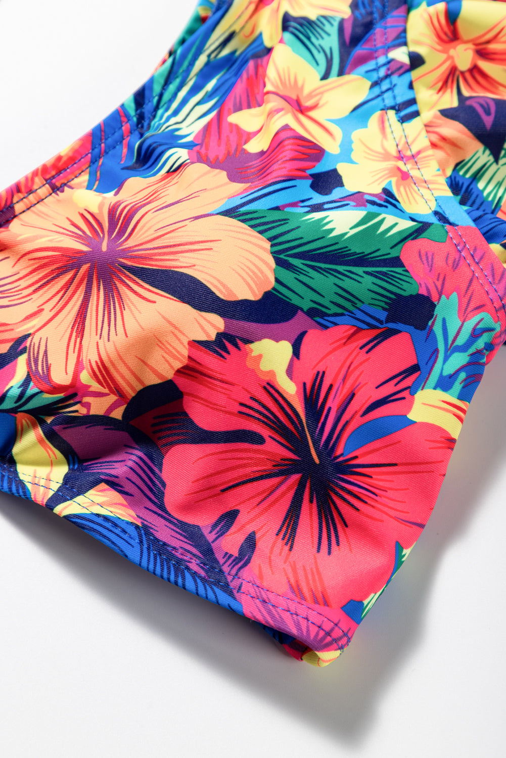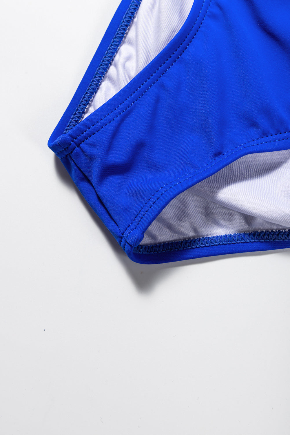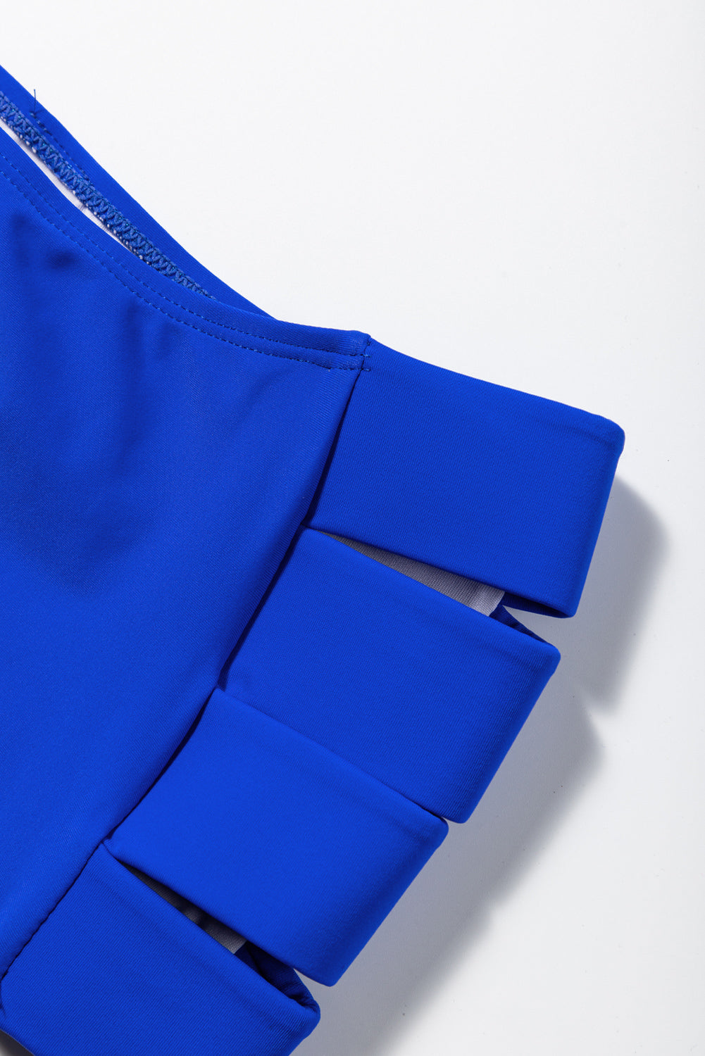 Dark Blue Sexy Deep V Neck Tie Ruffles High Waisted Bikini Set