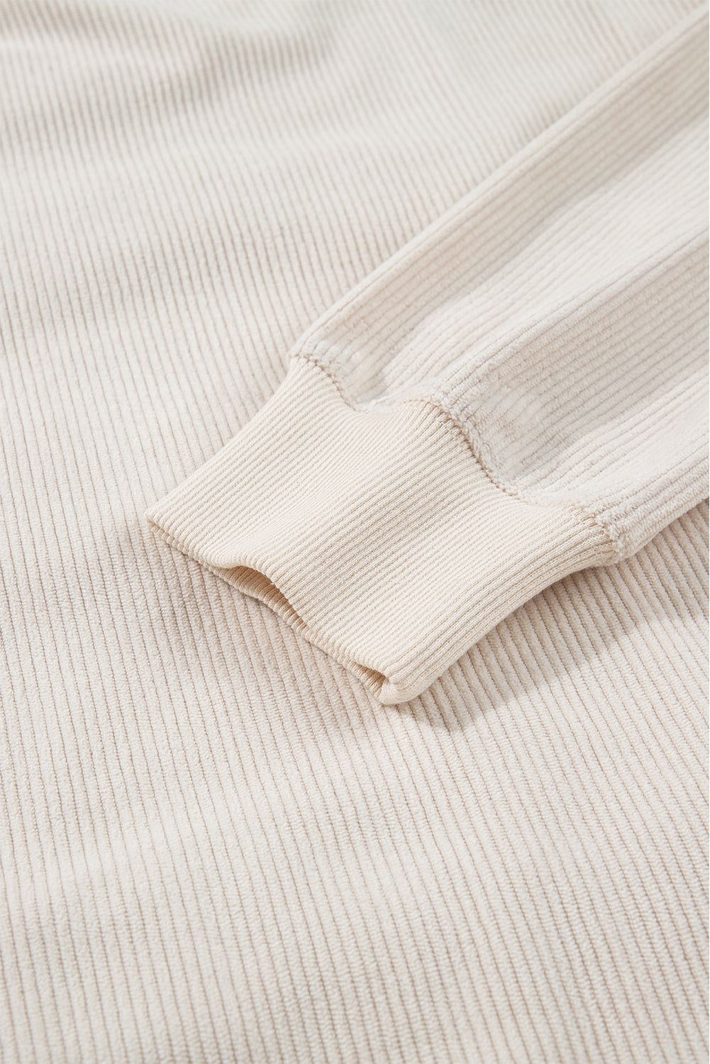 - Crafted from high-quality ribbed fabric, this sweatshirt offers both comfort and style, perfect for casual outings or lounging at home.