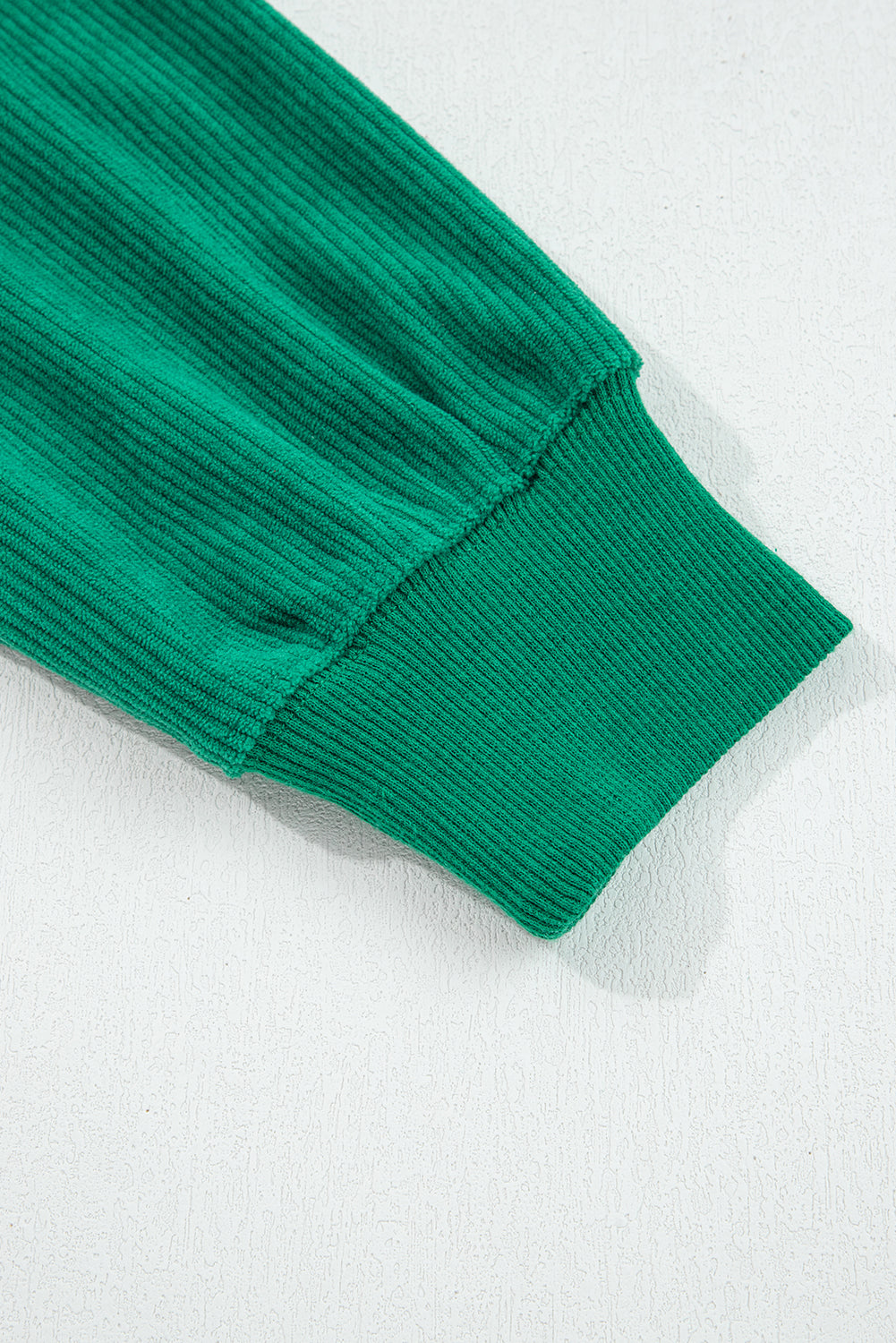 Dark Green merry everything Letter Graphic Ribbed Loose Sweatshirt