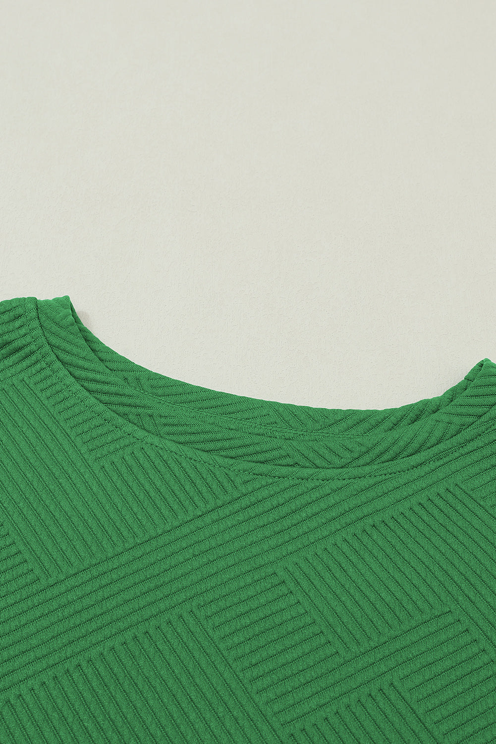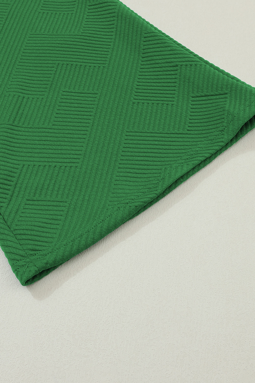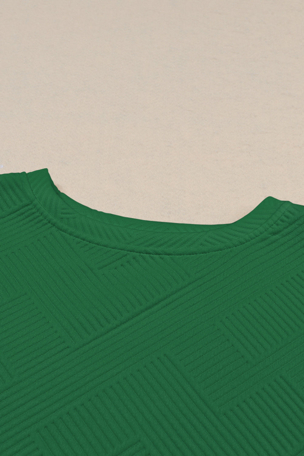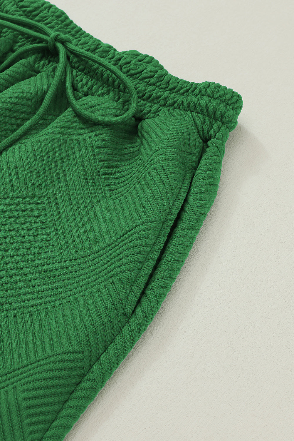 Dark Green Textured Loose Slouchy Long Sleeve Top and Pants Set