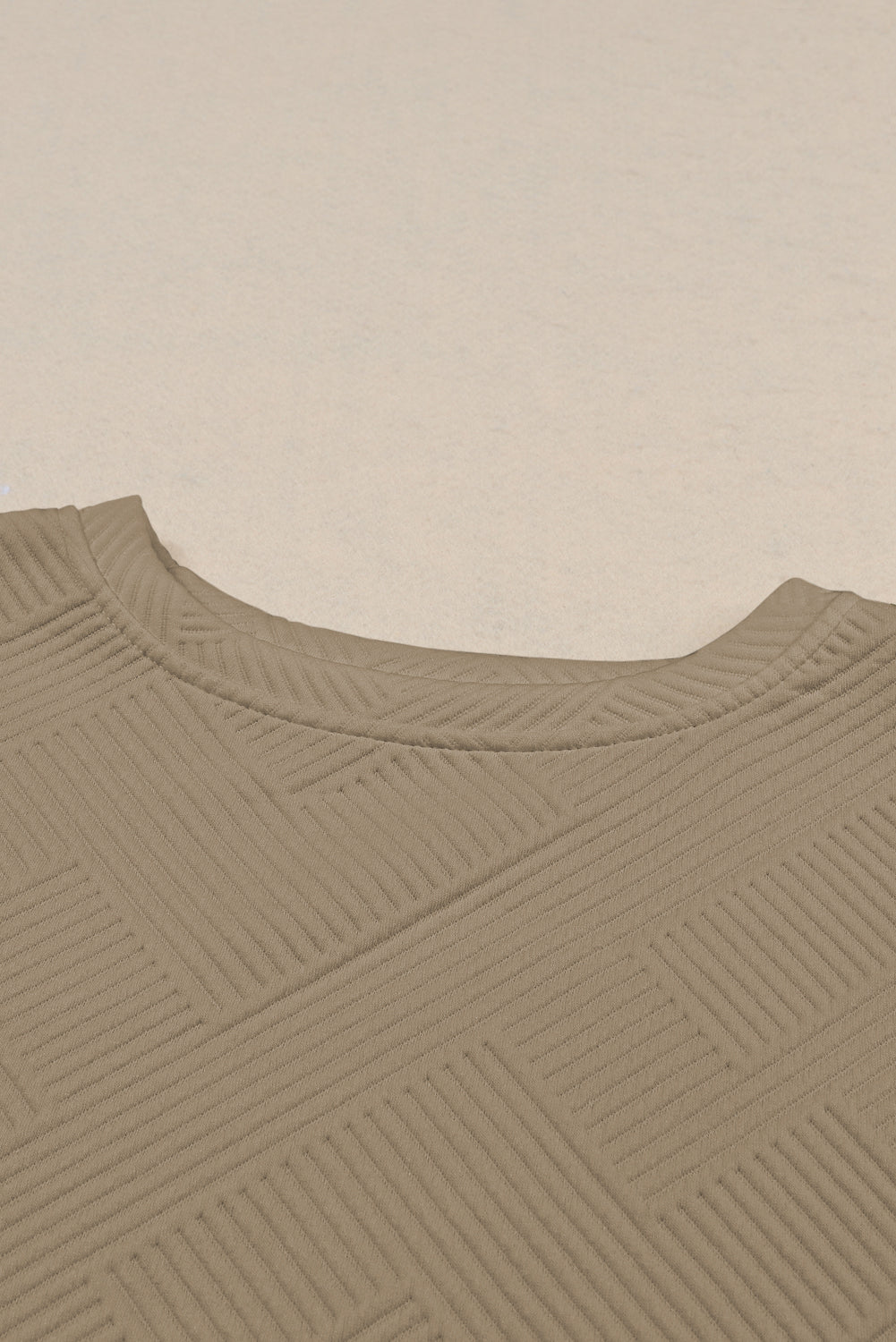 Dark Khaki Textured Loose Slouchy Long Sleeve Top and Pants Set