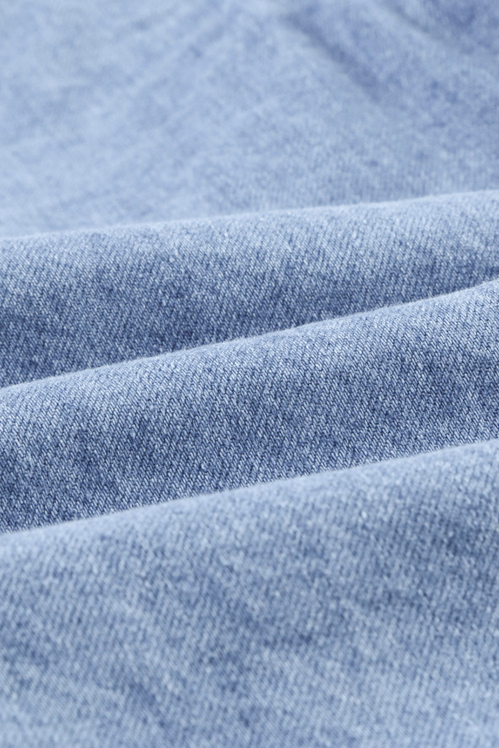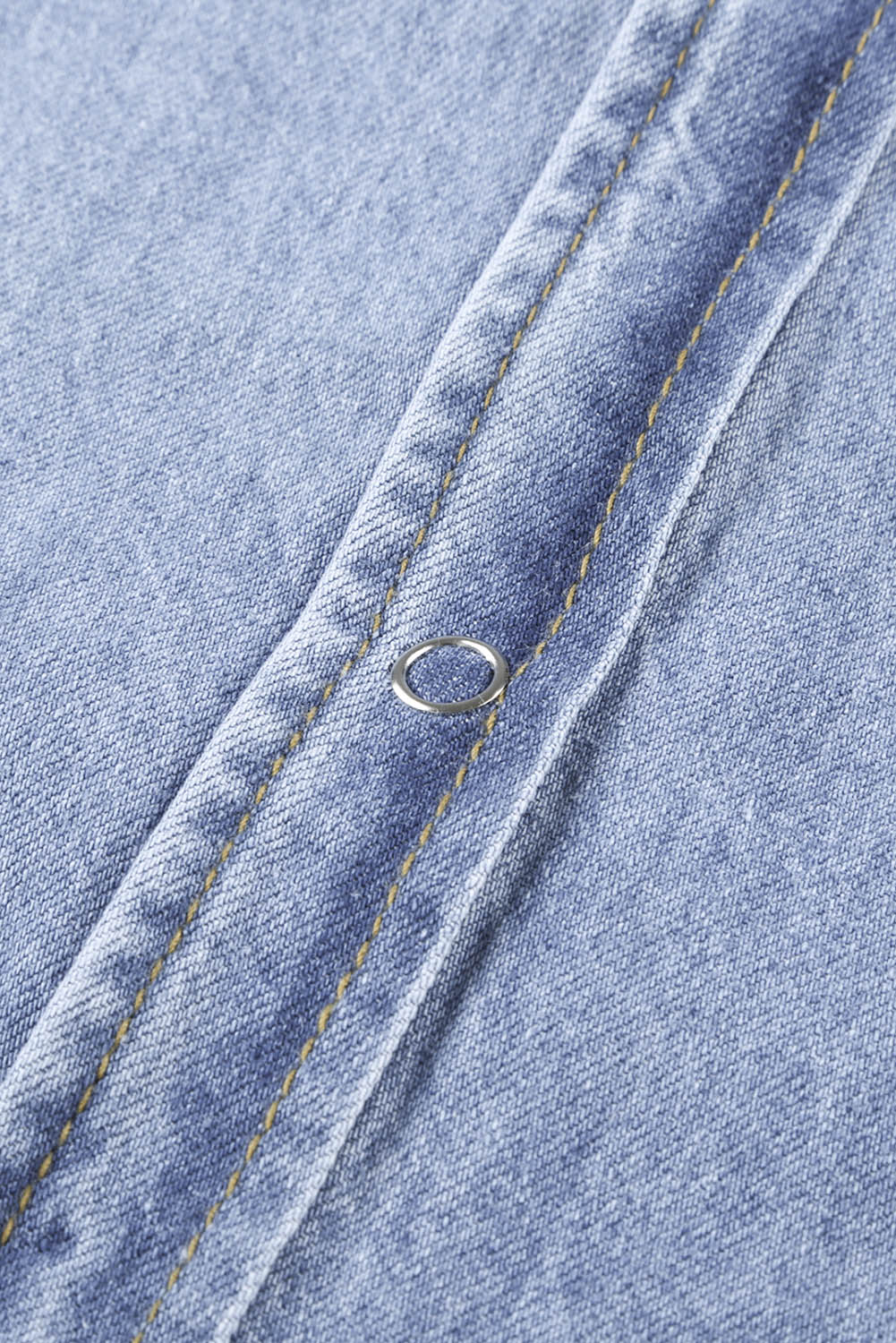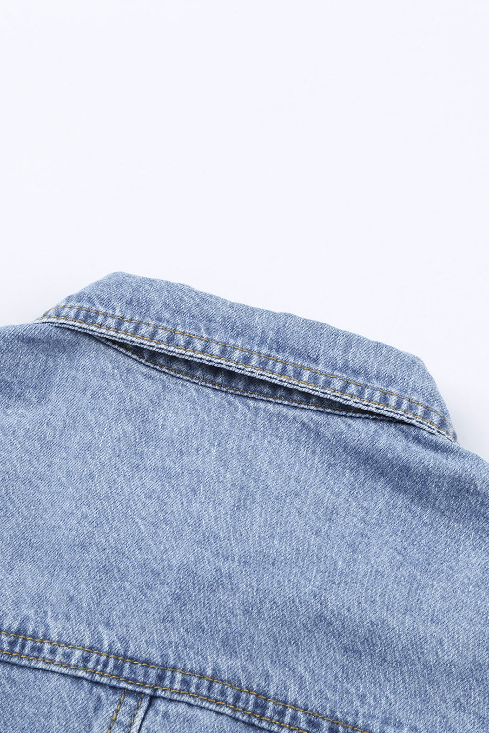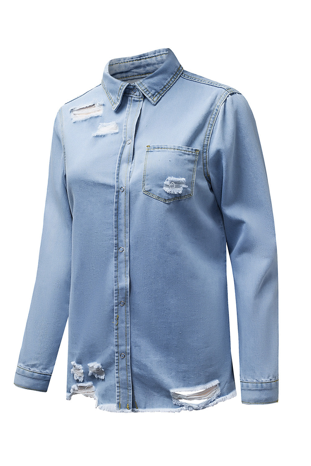 Green Casual Ripped Raw Hem Button Up Denim Shacket