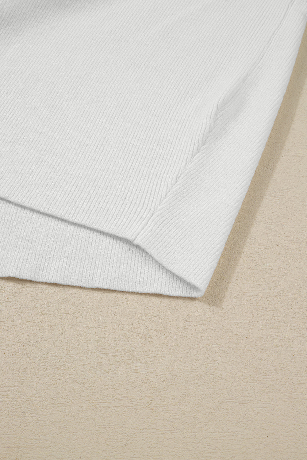 - The ribbed knit texture adds a touch of texture and visual interest to this effortlessly chic sweater.