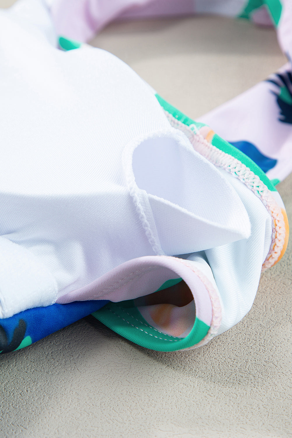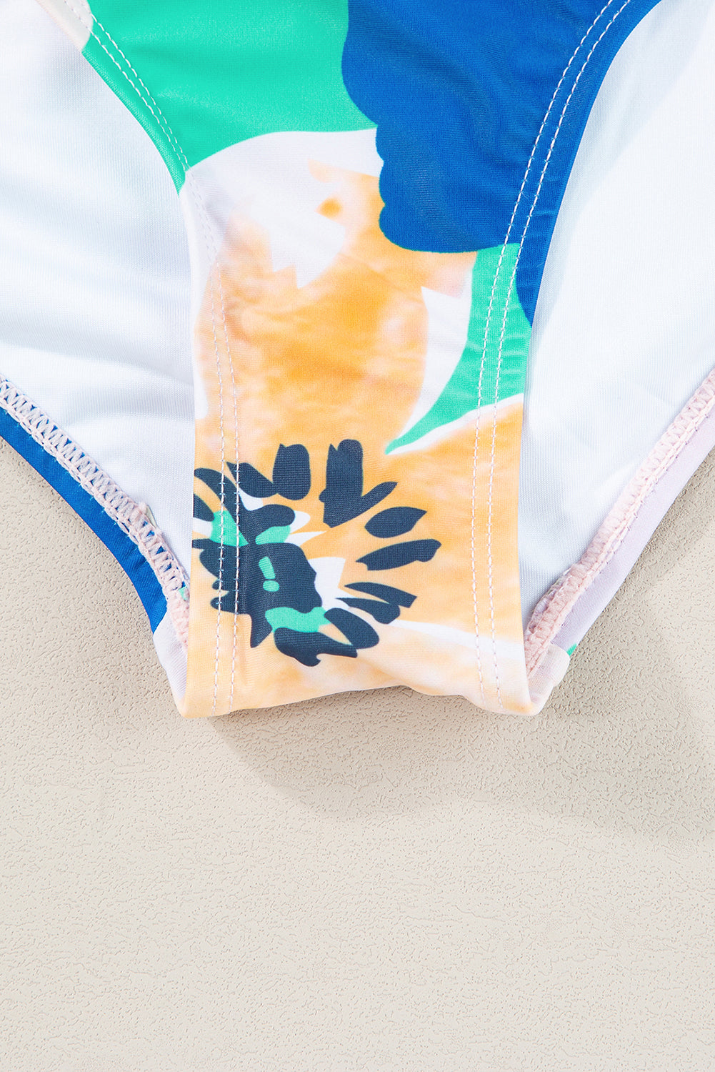 Green Floral Print Ruched Cut Out One Shoulder One Piece Swimsuit
