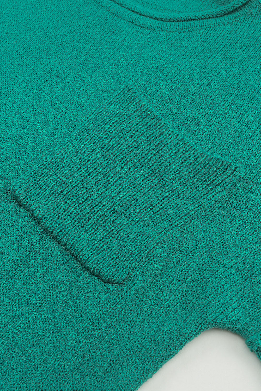 Green Solid Color Drop Shoulder Knitted Pullover Sweater