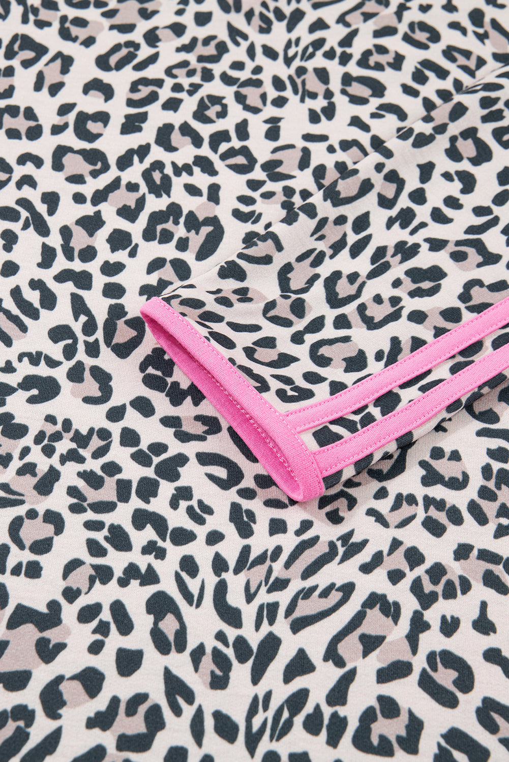 Pink accents on the neckline and sleeves greatly highlights this leopard top.
