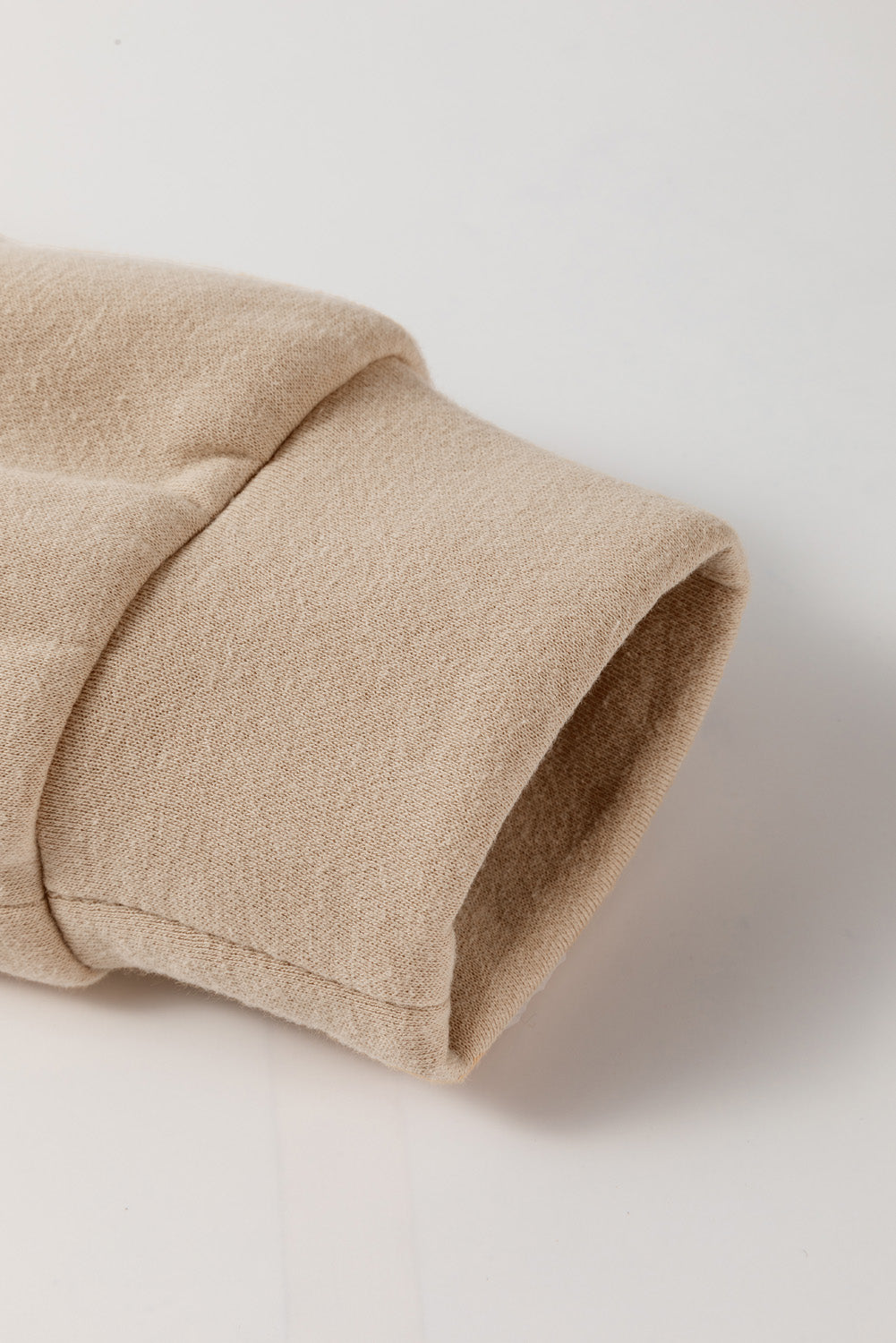 Khaki Solid Color Hoodie and Drawstring Joggers Set