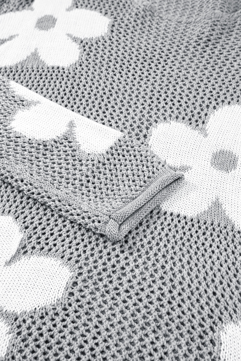 Light Grey 60s Flower Drop Shoulder Hollow Knit Top