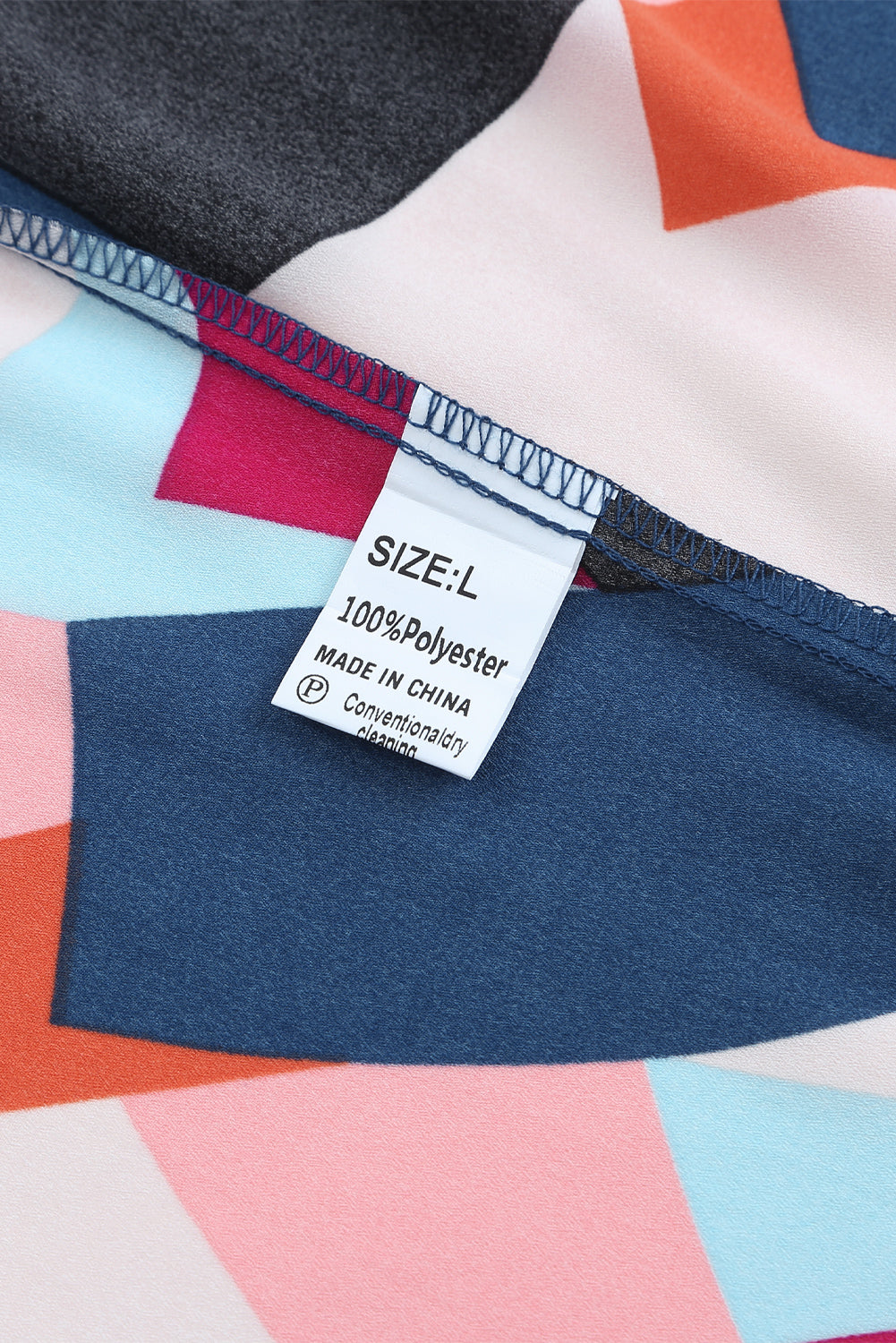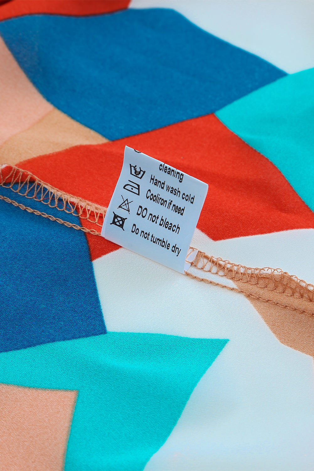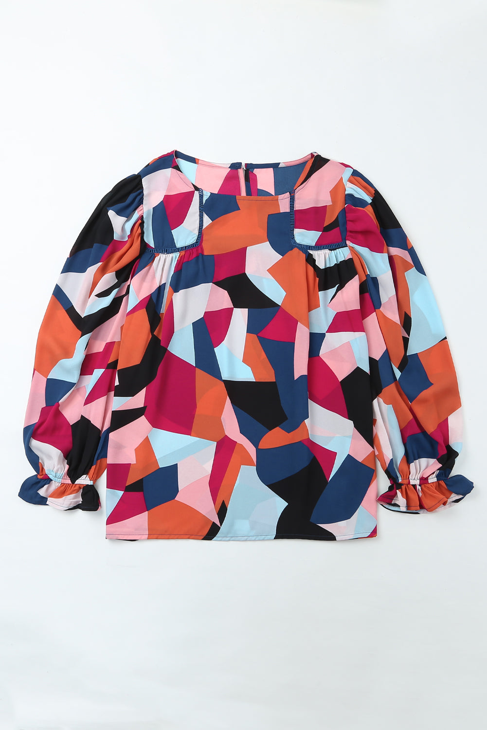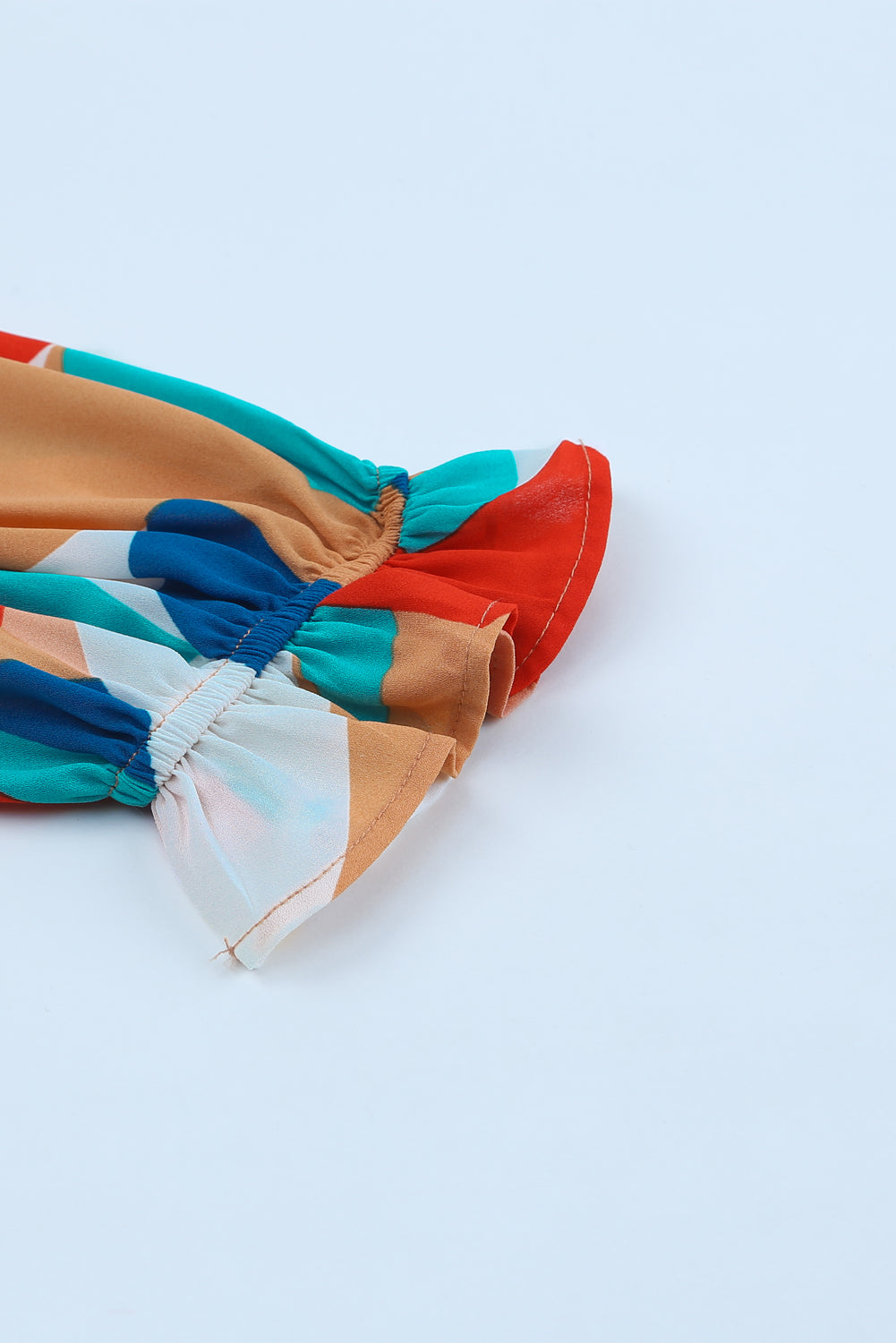 Multicolor Colorblock Casual Ruffle Puff Sleeve Blouse