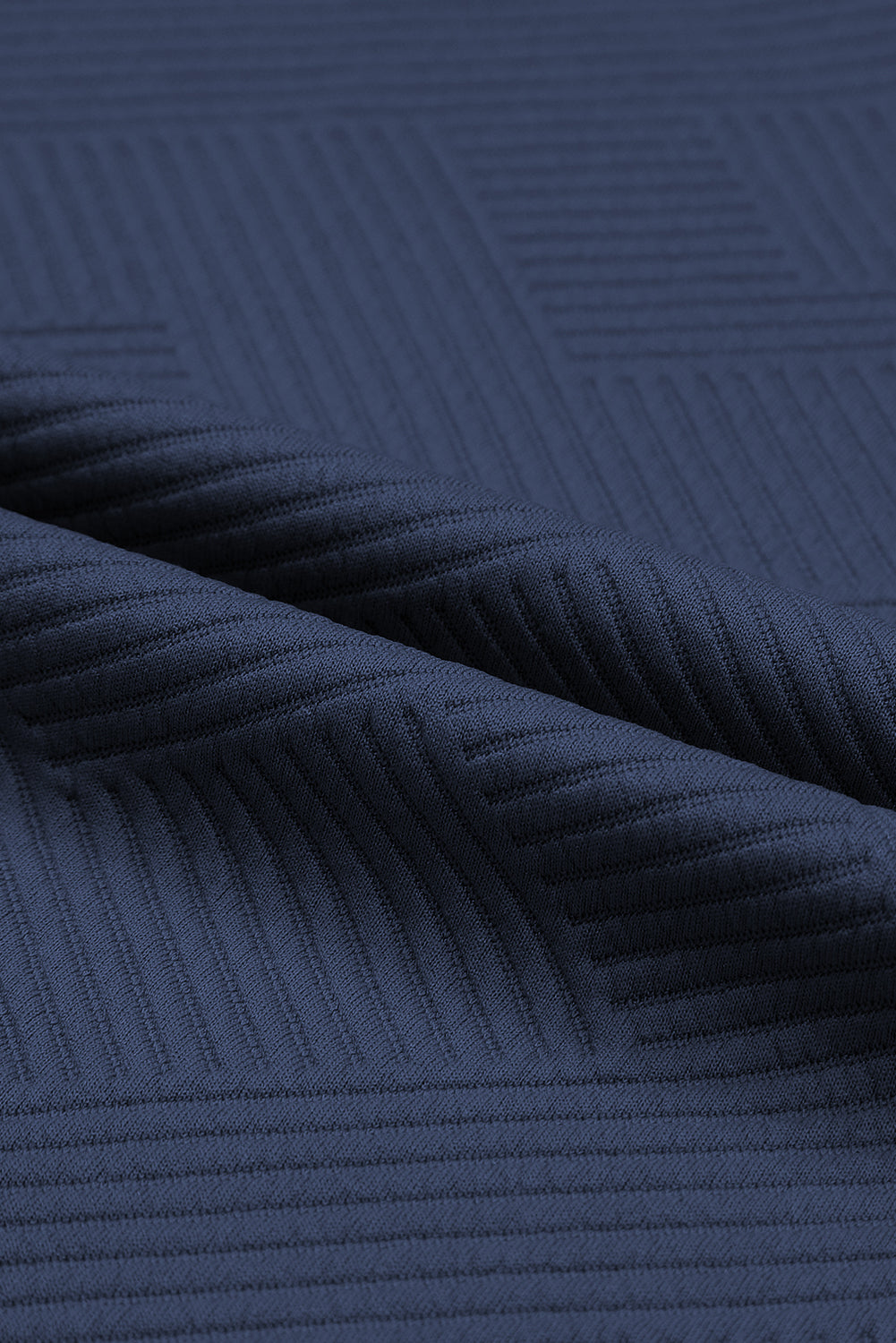 Navy Blue Textured Loose Fit T Shirt and Drawstring Pants Set