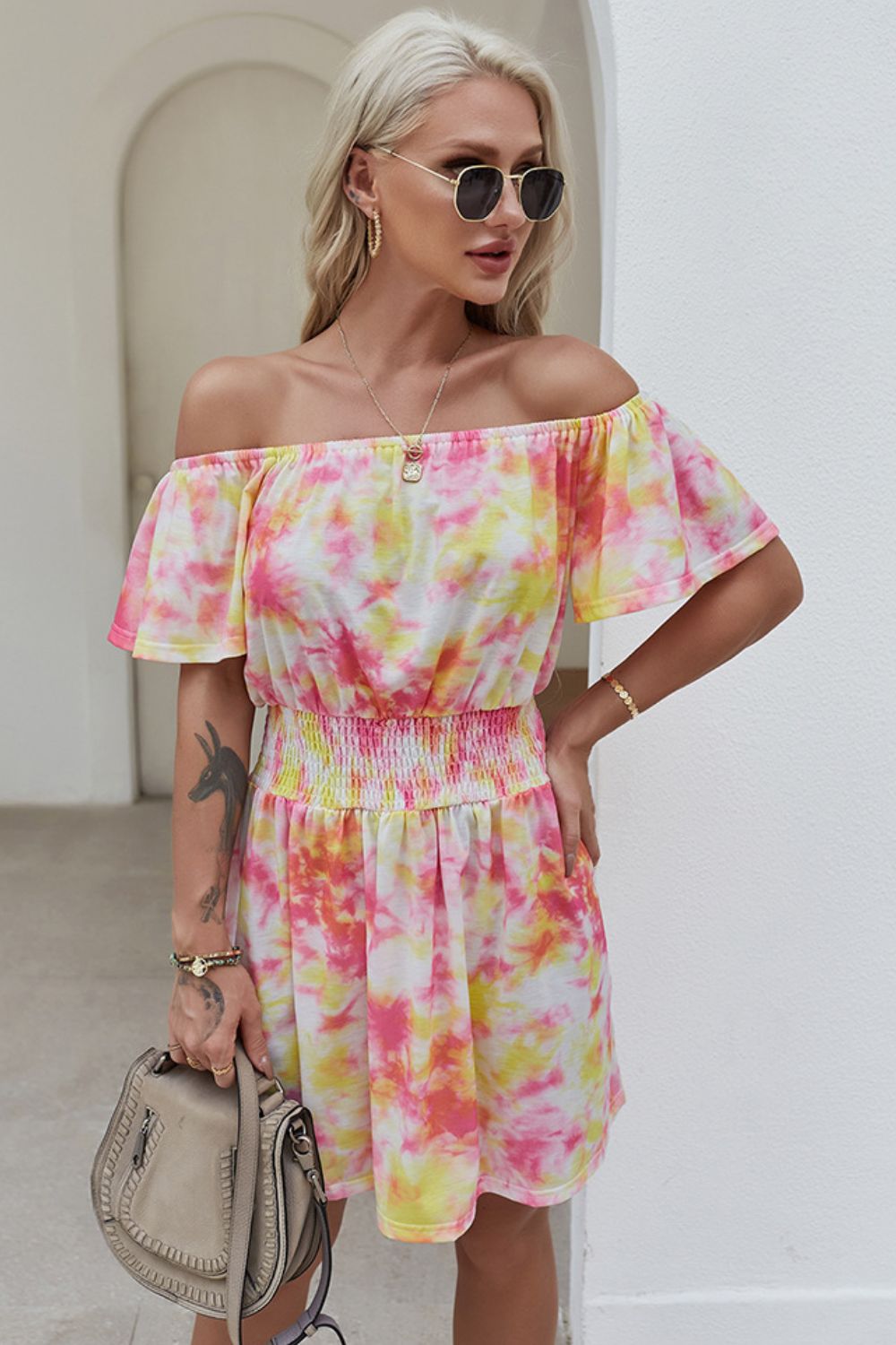 Off-Shoulder Short Flutter Sleeve Mini Dress