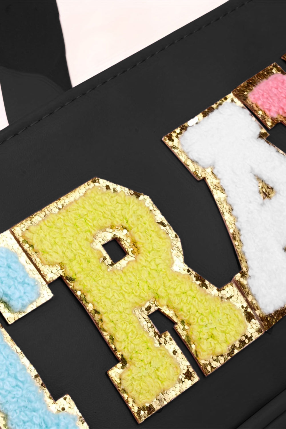 - The letter detail on the front of the bag adds a trendy and playful element.