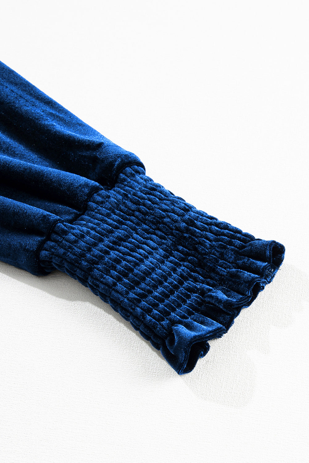 Peach Blossom Mock Keyhole Neck Puff Sleeve Velvet Blouse