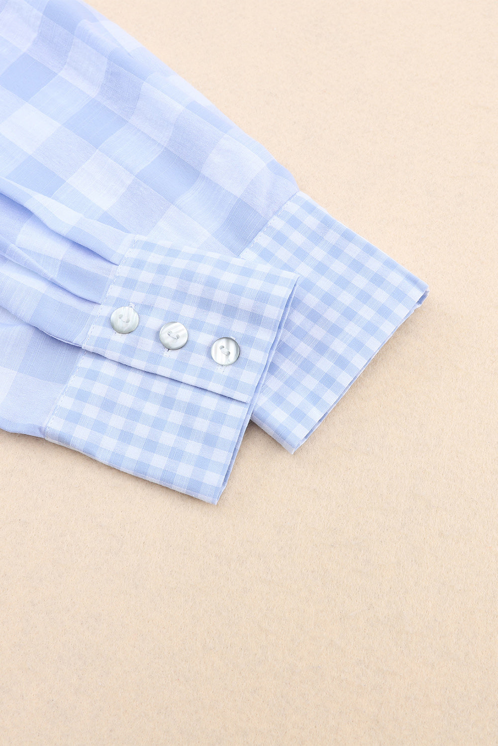 Pink Mix Checked Pocket Patchwork Long Sleeve Shacket