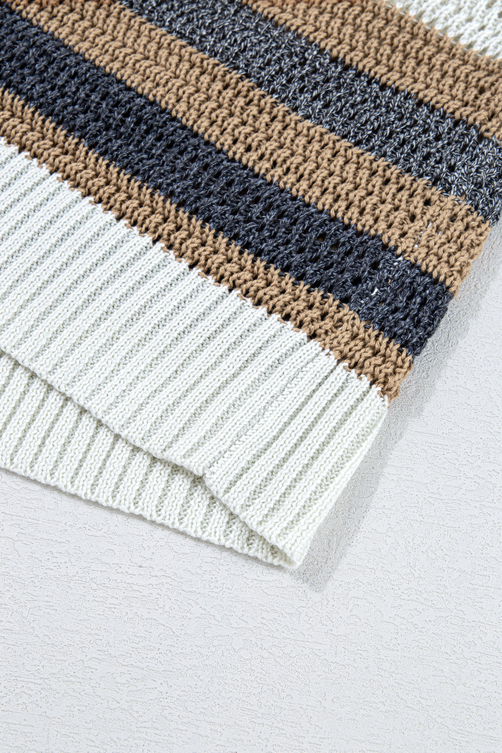 Pink Stripe Color Block Eyelet Knit Short Sleeve Sweater Tee