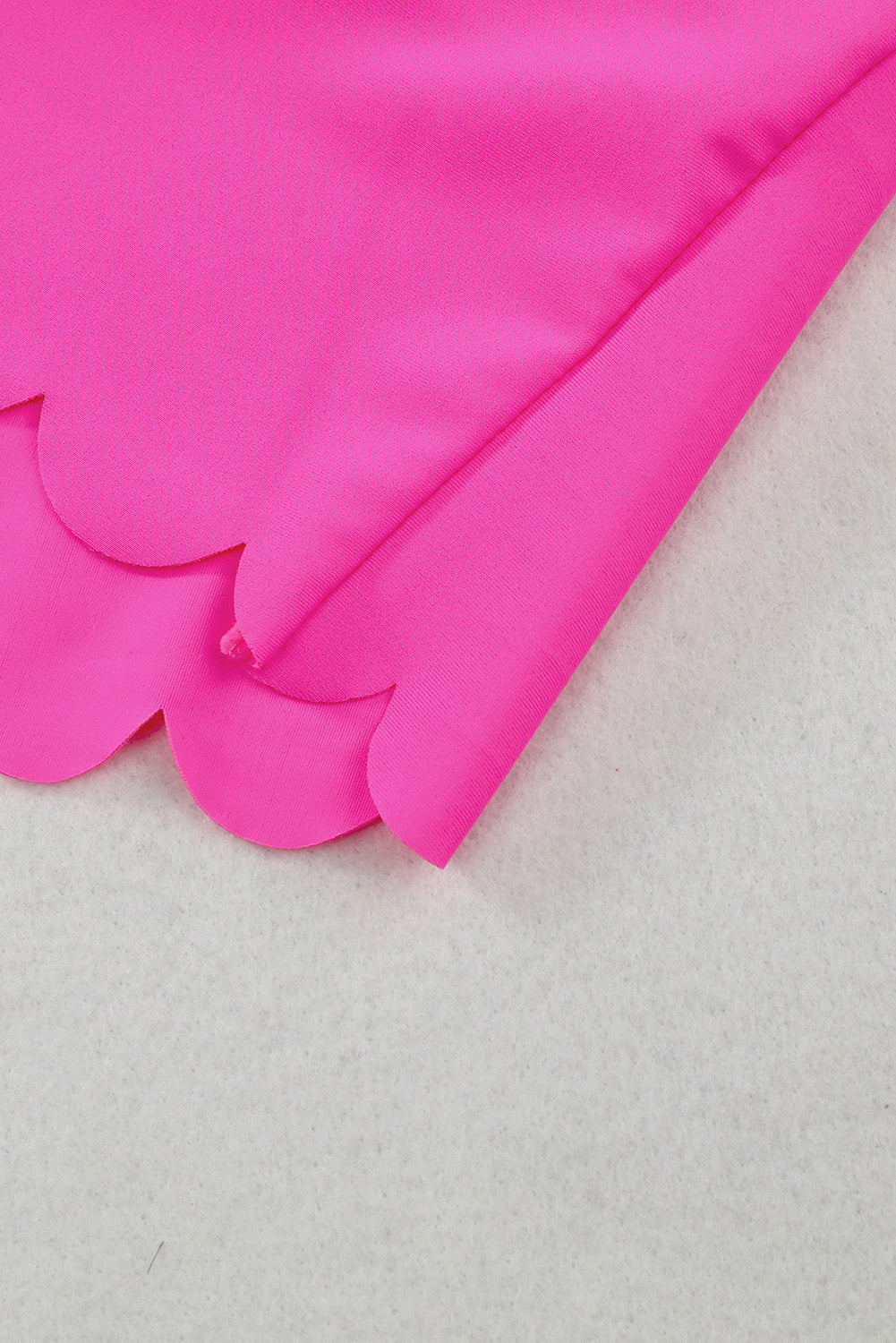 - Step out in style this summer with this adorable rose-colored scalloped two-piece swimsuit.