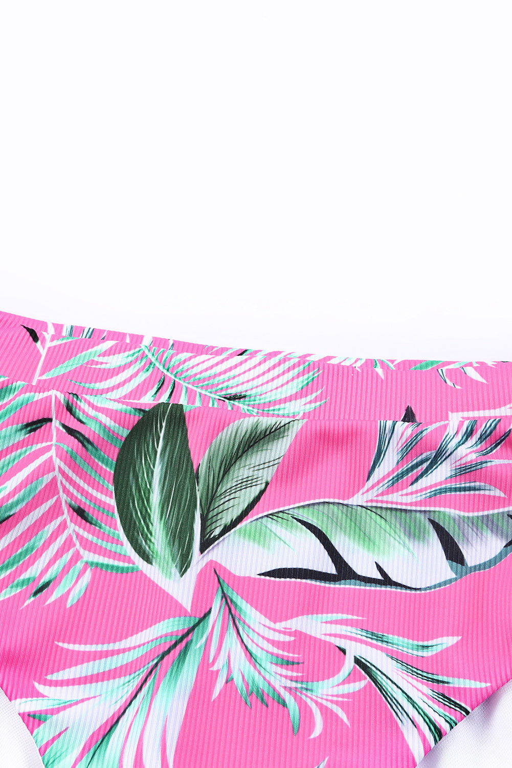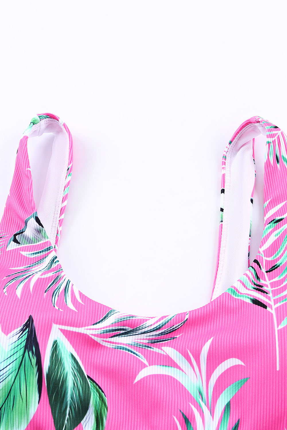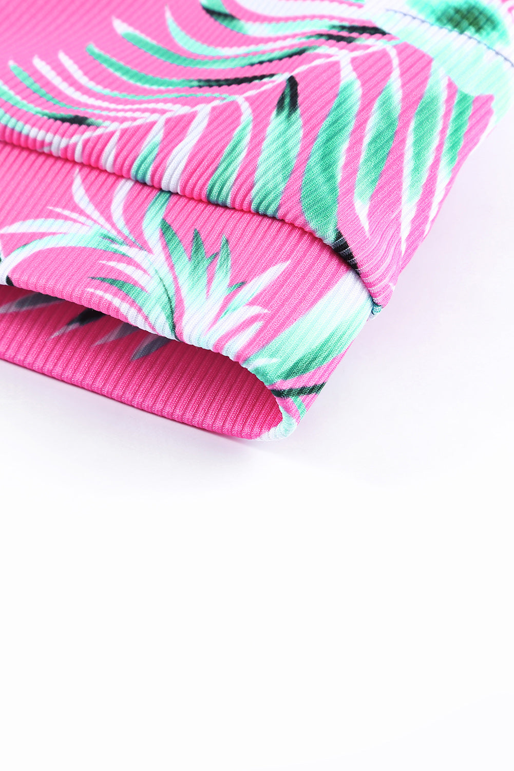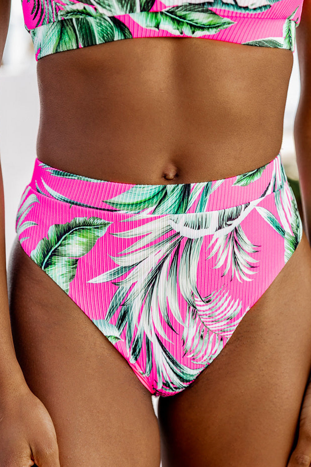 Rose Tropical Scoop Neck Ribbed High Waist Bikini Set