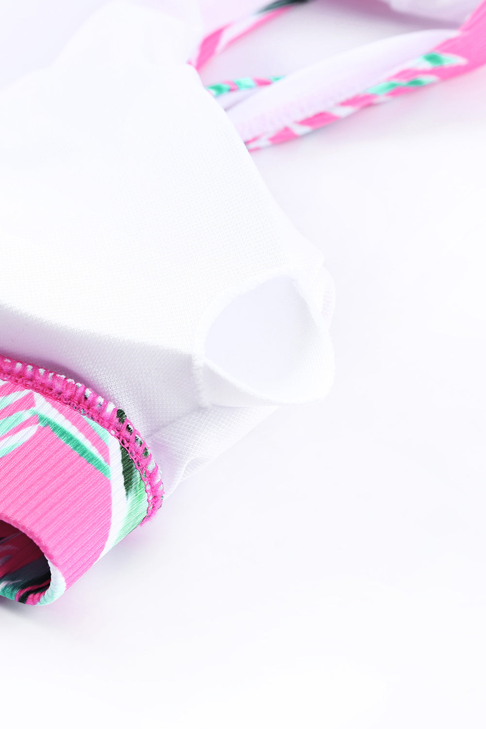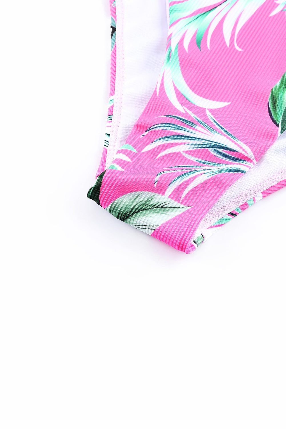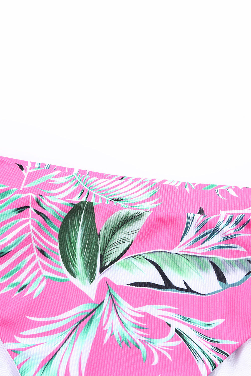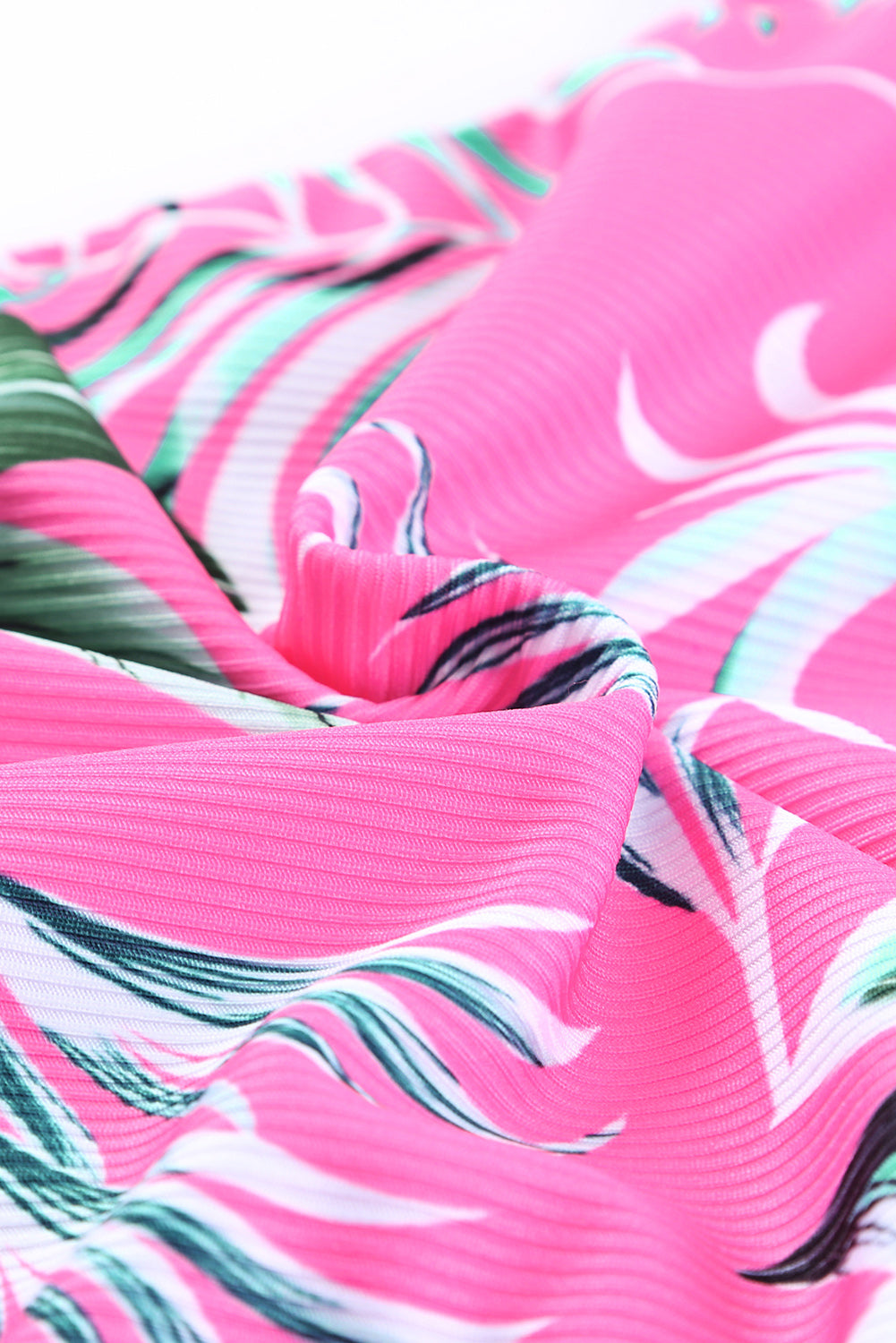 Rose Tropical Scoop Neck Ribbed High Waist Bikini Set
