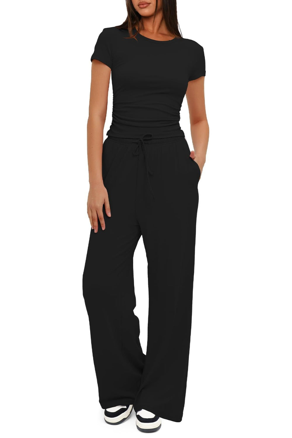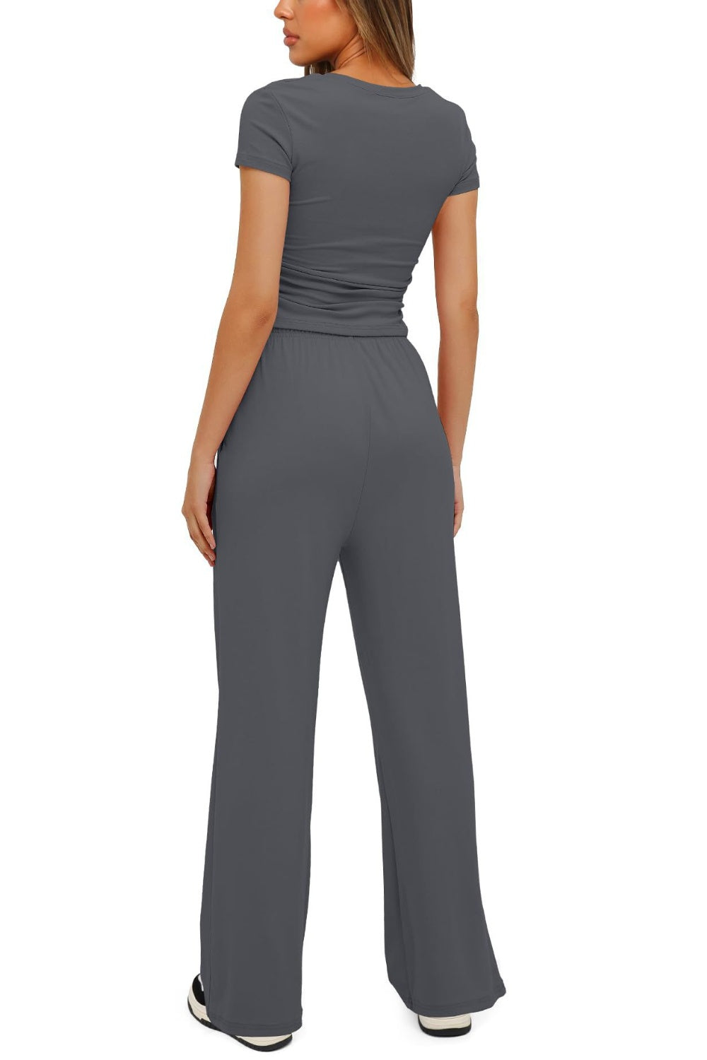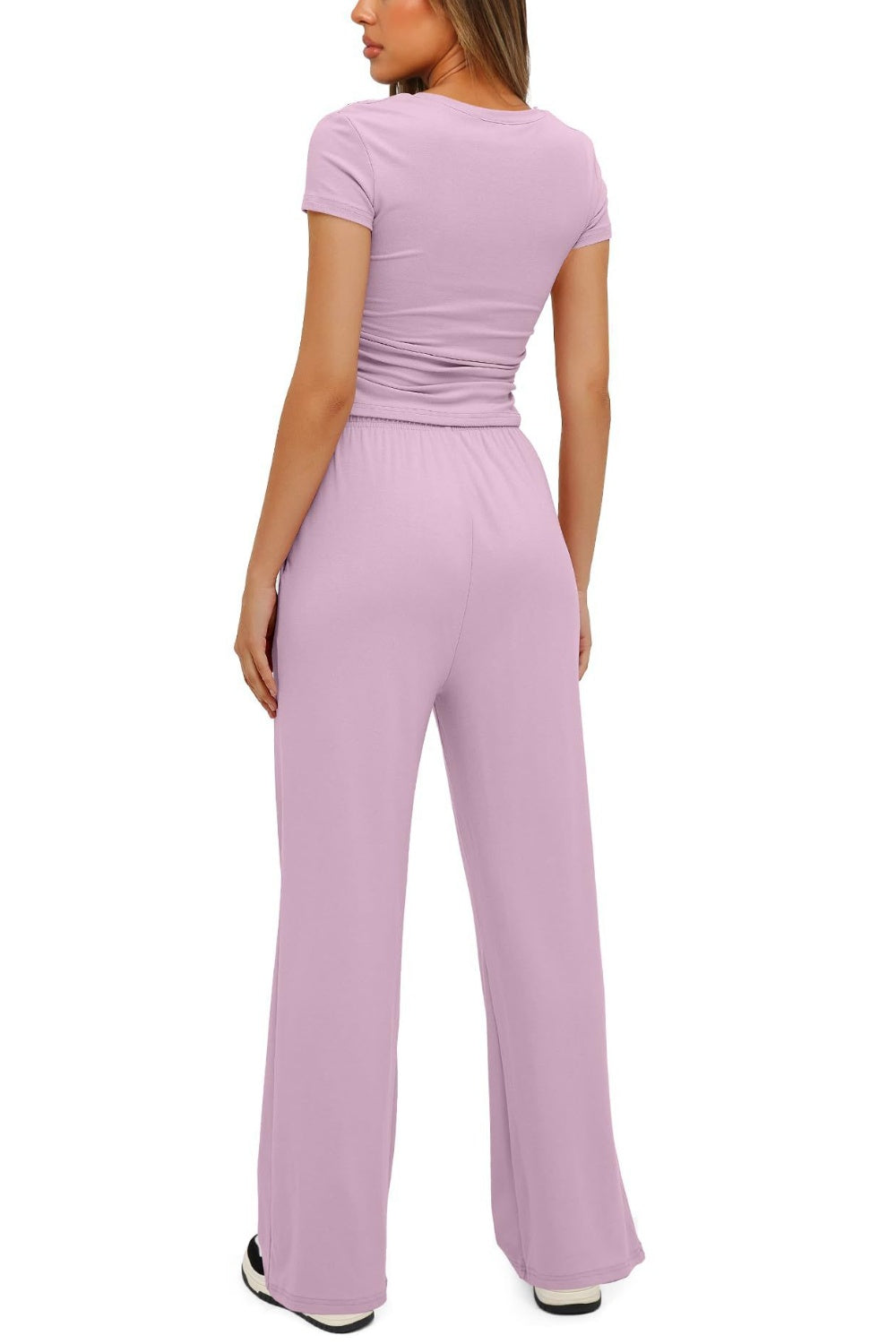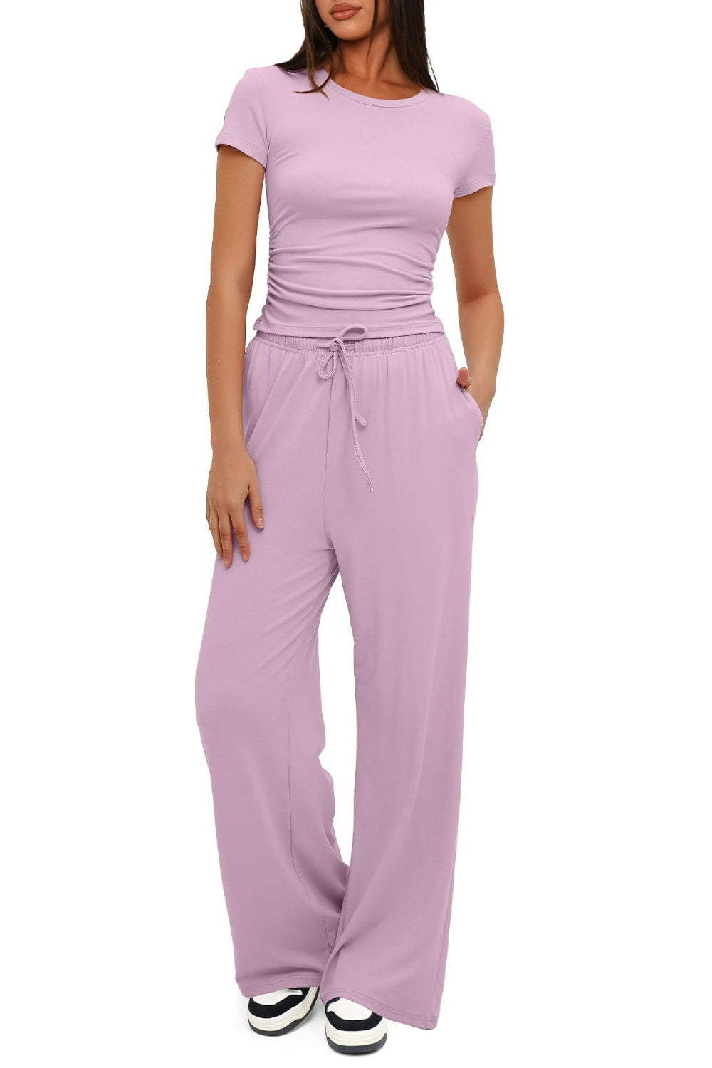 Round Neck Short Sleeve Top and Pants Set