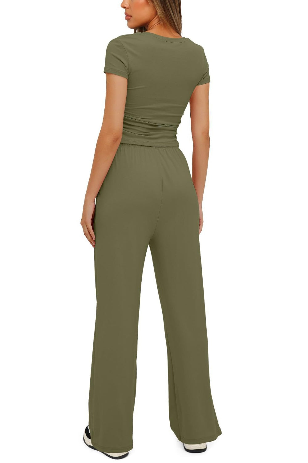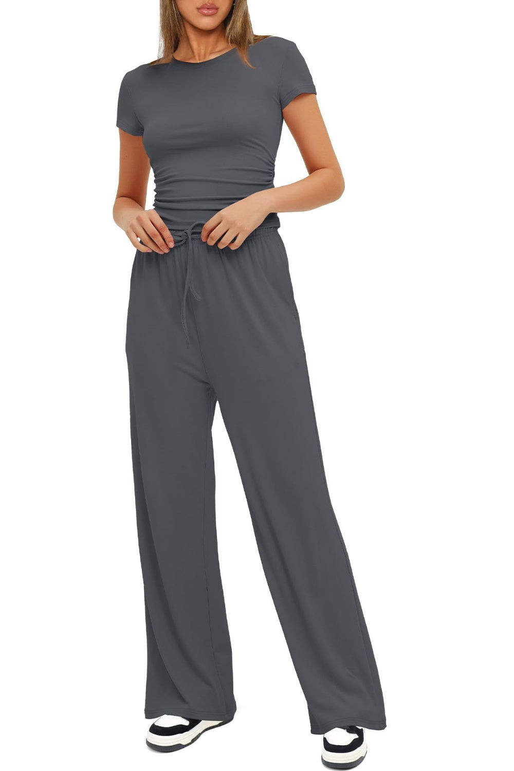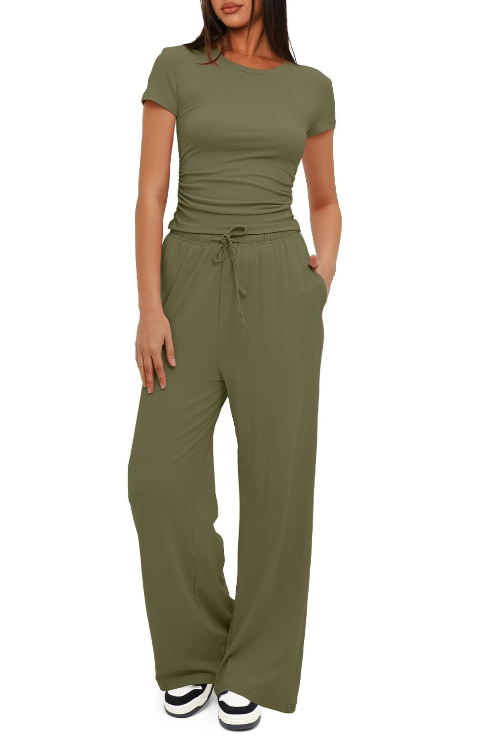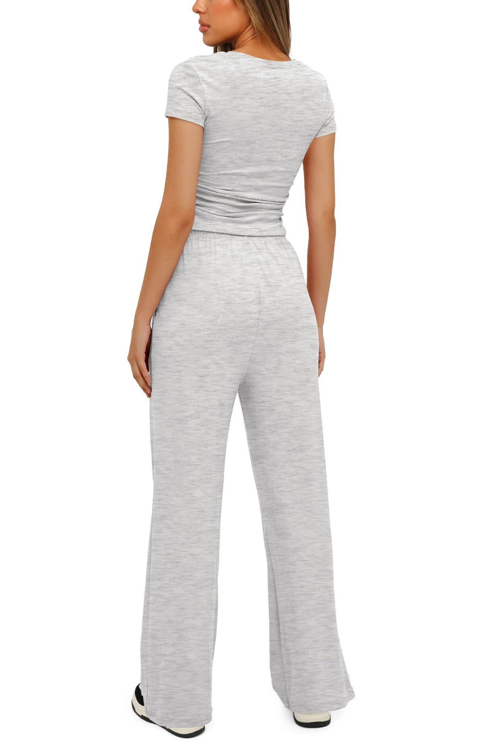 Round Neck Short Sleeve Top and Pants Set