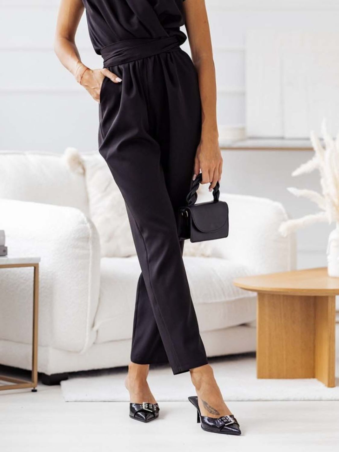 Ruched Tied Surplice Short Sleeve Jumpsuit