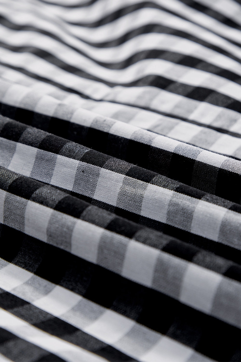 Ruffled Plaid Mock Neck Cap Sleeve Blouse